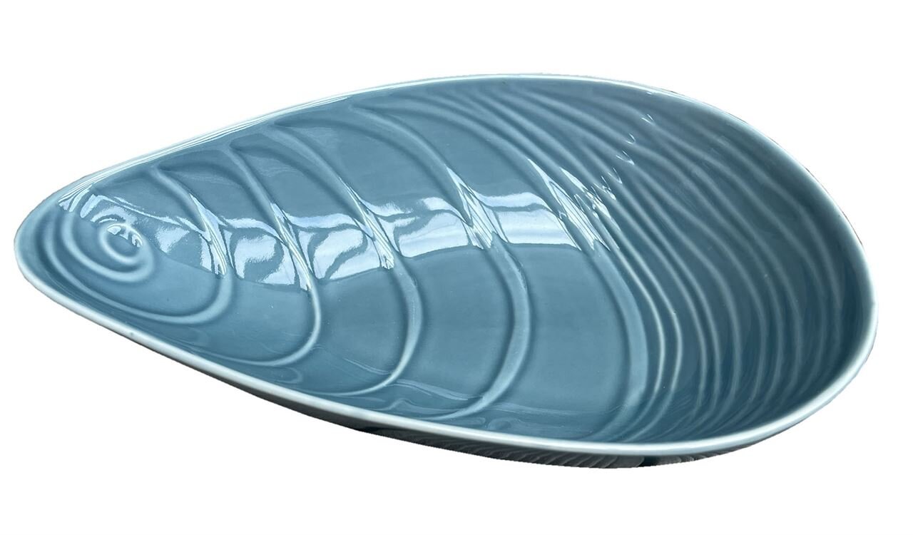 The Mussel series features a textural relief design with a gloss clear glaze inside and outside.