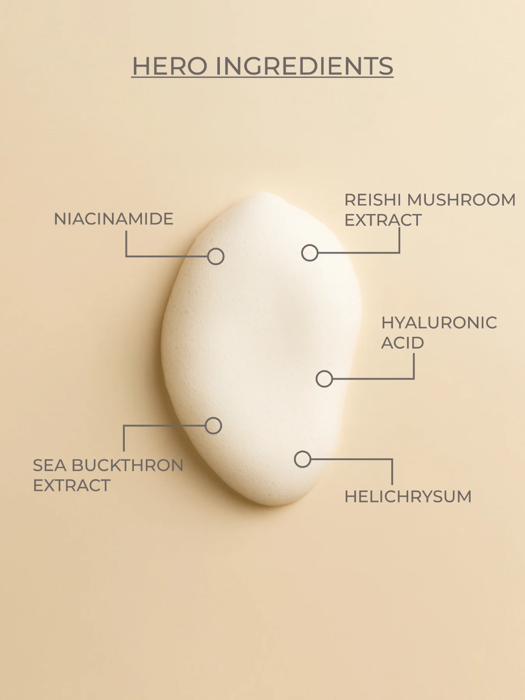 Tea Saponin lifts impurities, Niacinamide refines, and Reishi Mushroom, Papaya, and Sea Buckthorn smooth and revitalise. With Hyaluronic Acid for moisture and MSM for strength, skin is left refreshed, silky, and ready for your skincare routine.
