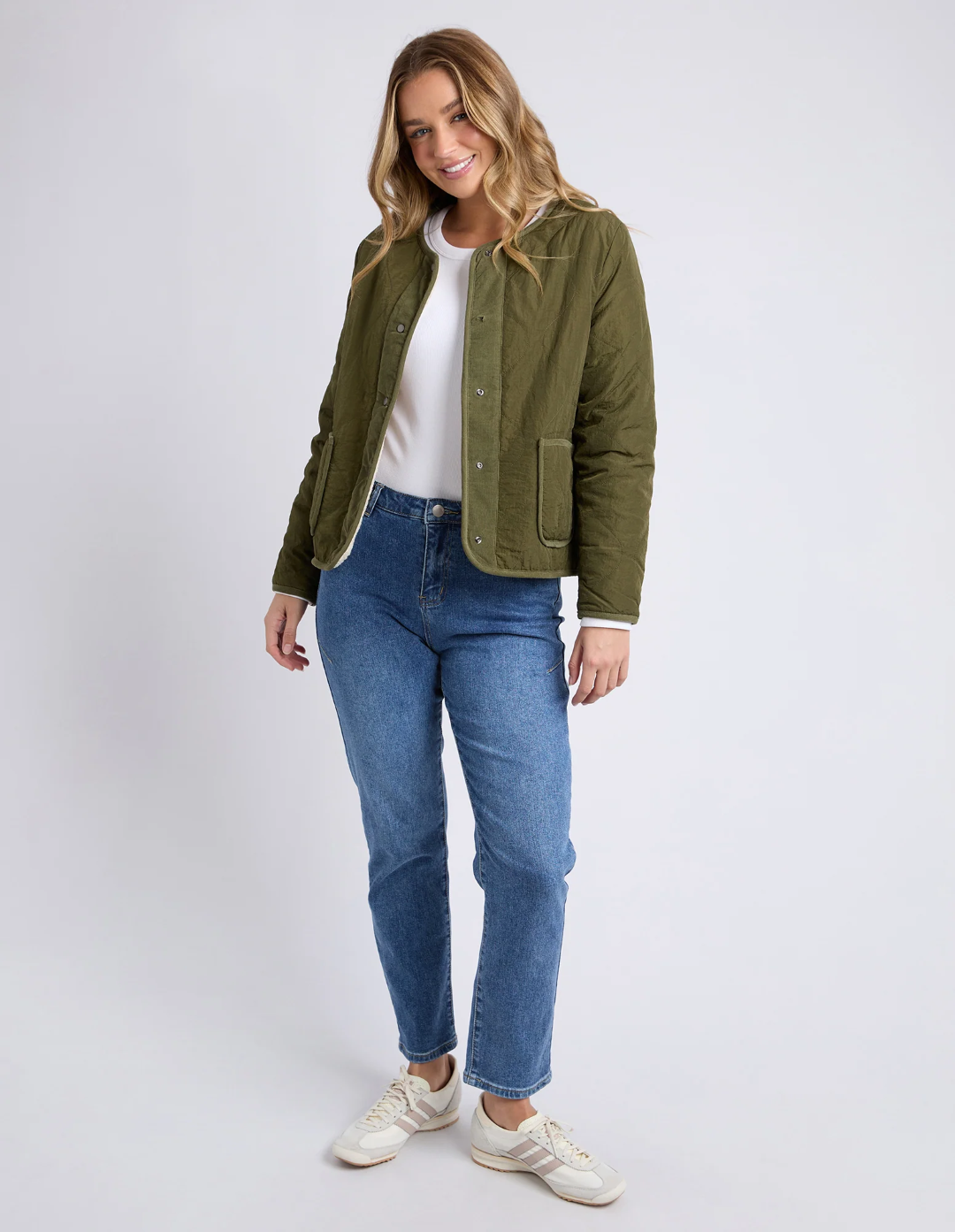 The Alberta Quilted Jacket in Winter Moss is your go-to layer for effortless warmth and style. This round neck button-up design features quilted construction that traps heat while maintaining a sleek silhouette. Perfect for layering over your favourite pieces, it transitions seamlessly from casual weekends to polished weekday looks. The quilted texture adds visual interest and durability, ensuring this jacket becomes a reliable staple in your wardrobe season after season.
