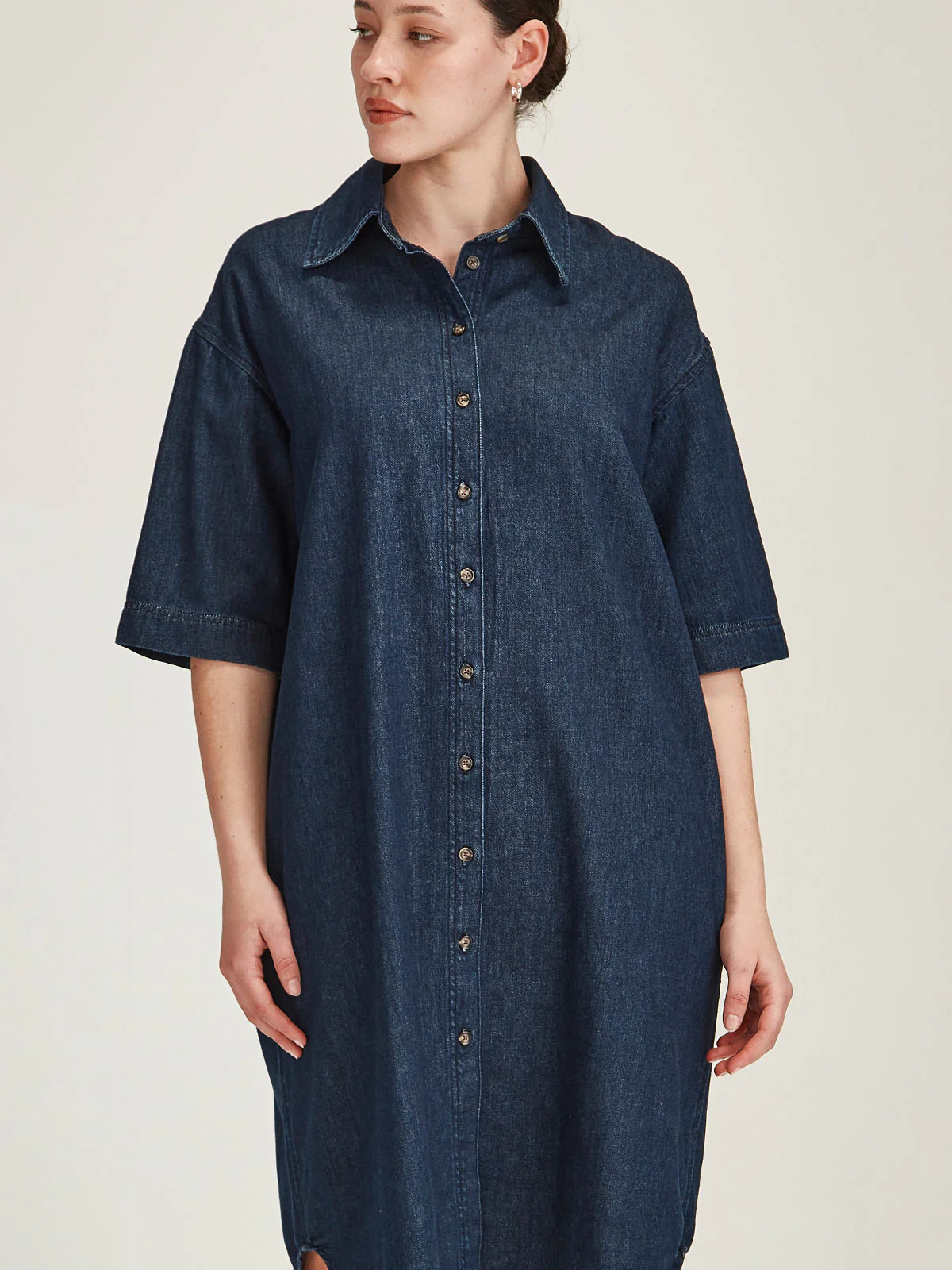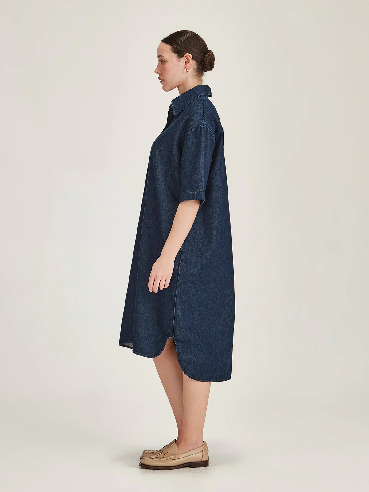 Alexa is a versatile shirt dress made in our new Ginza Denim - the ideal trans-seasonal weight for this time of year and onwards.