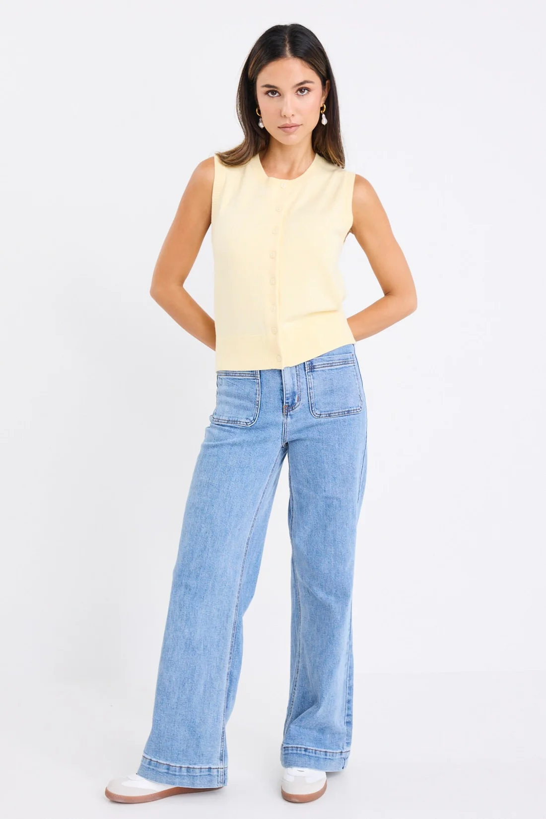 Softly structured and endlessly versatile, the Alleyway cream vest brings a polished twist to everyday styling. With its delicate blend of cashmere and viscose, this knit feels buttery soft against the skin while the button-down front adds a clean, tailored touch. It's the kind of piece you'll reach for when you want to look effortlessly put-together.