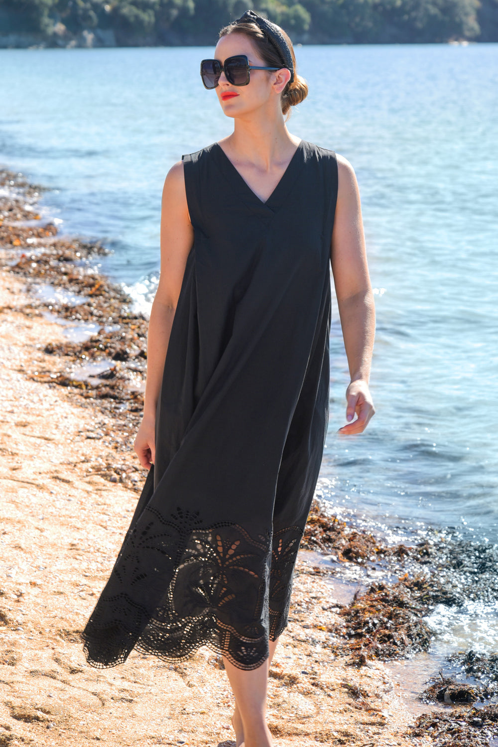 Your sartorial styling solution for smart weekend dressing this summer is none other than the ‘Bottom Heavy’ dress. Showcasing tropical inspired broderie anglaise in the ‘Feeling Crabulous’ cotton, this dress sports an A-line silhouette with pleating from the under-arm creating whimsical movement as well as comfort. The perfect ‘throw-on’ dress for hot weather when you want to look your best.