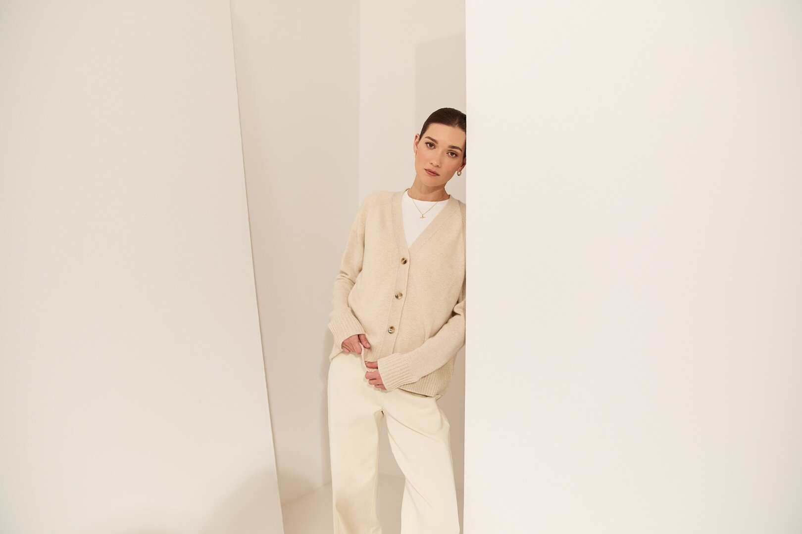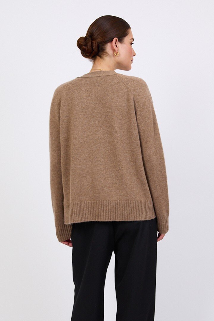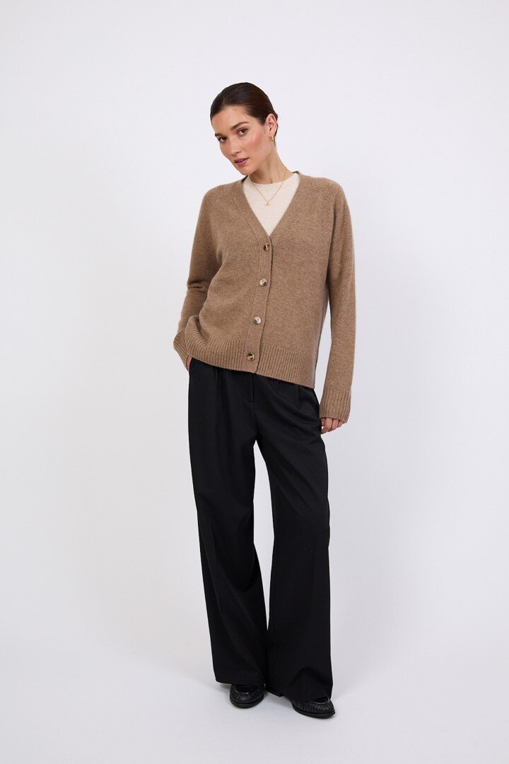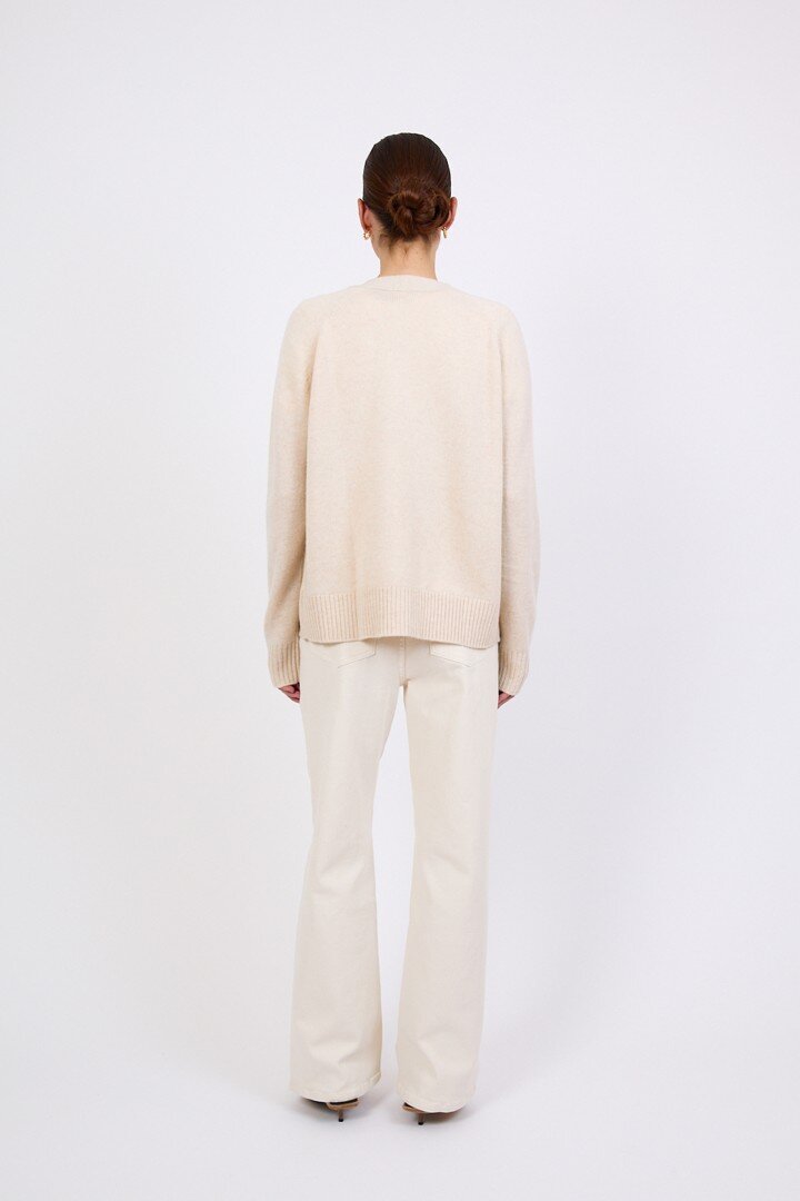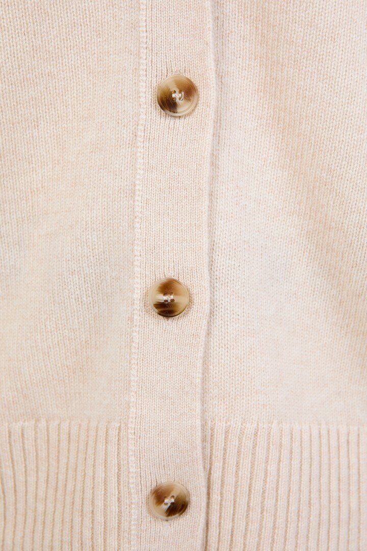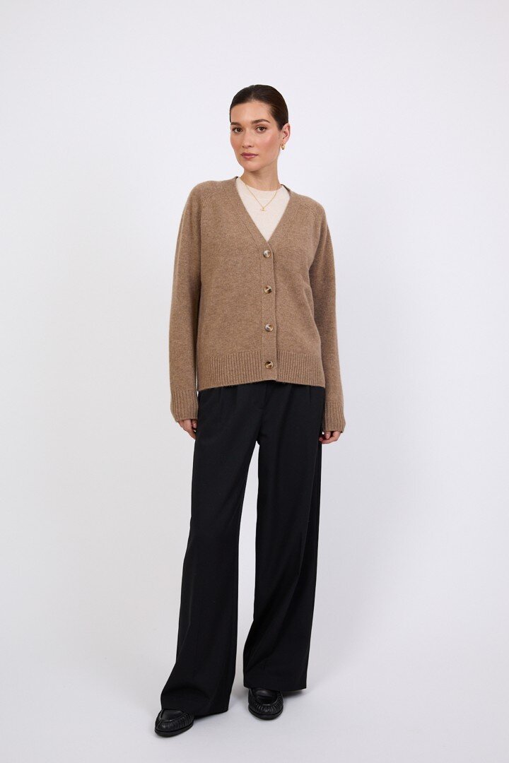Wrapped in the softness of pure cashmere, this season’s V Neck Cardigan is designed to feel as luxurious as it looks. Cut in a relaxed, slightly boxy silhouette with soft dropped shoulders, it features a flattering V neckline, wide placket and tonal tort buttons for a clean, elevated finish.Crafted in a mid-heavy weight 7 gauge cashmere knit, it offers warmth without heaviness, making it the perfect piece to carry you through the seasons. Easy to wear yet considered in every detail, it can be styled buttoned up for a more polished feel or worn open over the matching cashmere tee for a relaxed, layered look. Also available in Shadow and Shell