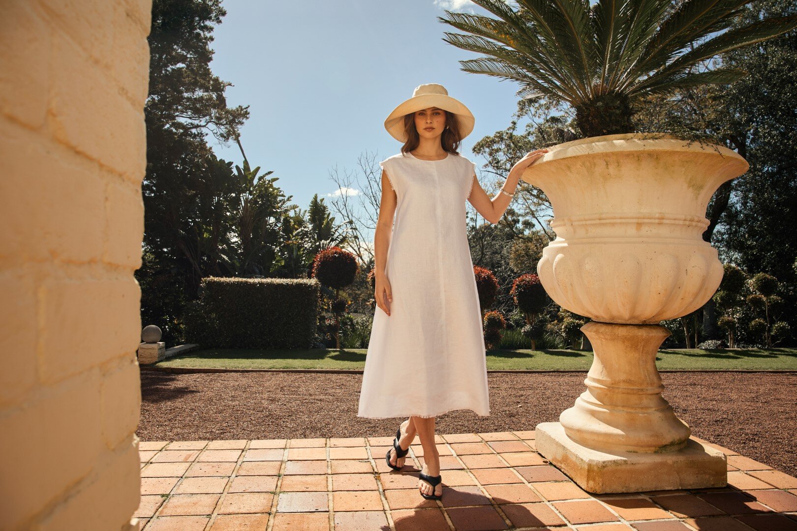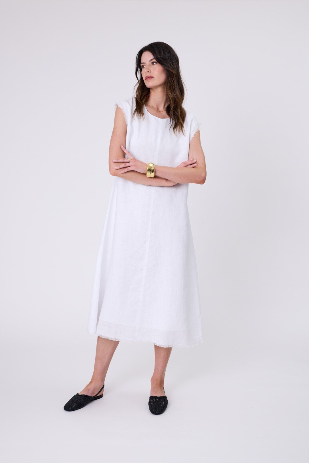 Chic and effortless, the Costa Linen Dress transitions seamlessly through all summer occasions. Crafted from refined European linen that offers beautiful drape and lasting quality, it falls in a flattering A-line silhouette and finished with frayed cap sleeves for an elevated edge. Featuring a centre front seam detail, keyhole button closure, and a softly frayed hem, this dress pairs perfectly with heeled sandals for an elevated look or slides for relaxed summer days.