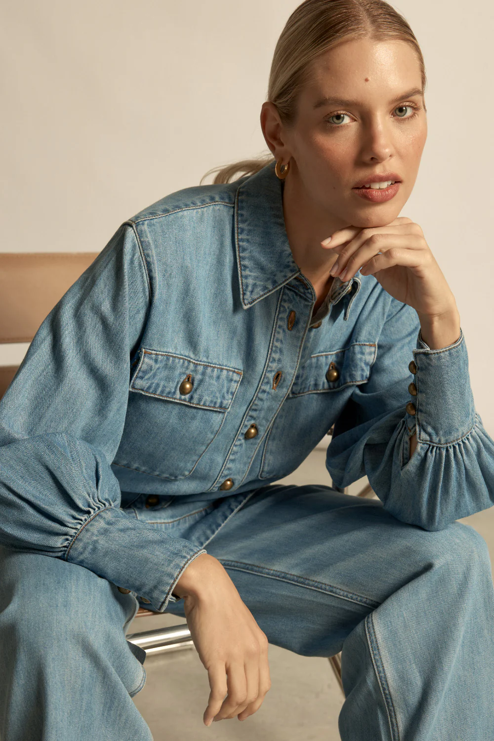 a modern essential with confident edge. the crest top redefines denim through proportion, versatility and quiet strength.