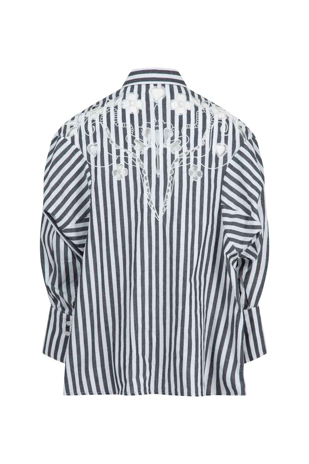 Step out in bold stripes this season in the ‘Cut to the Chase’ shirt. Crafted in the soft ‘Draw the Line’ yarn dyed cotton, this top showcases an intricate cut out embroidery which adorns the front and back. With generous batwing sleeves and an exaggerated cuff this shirt is nothing short of eye-catching details.