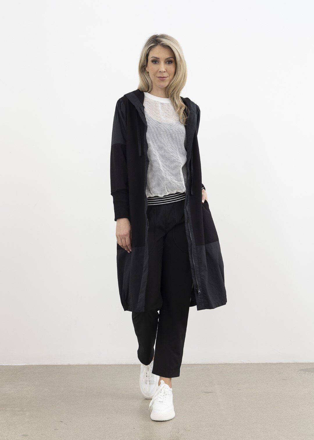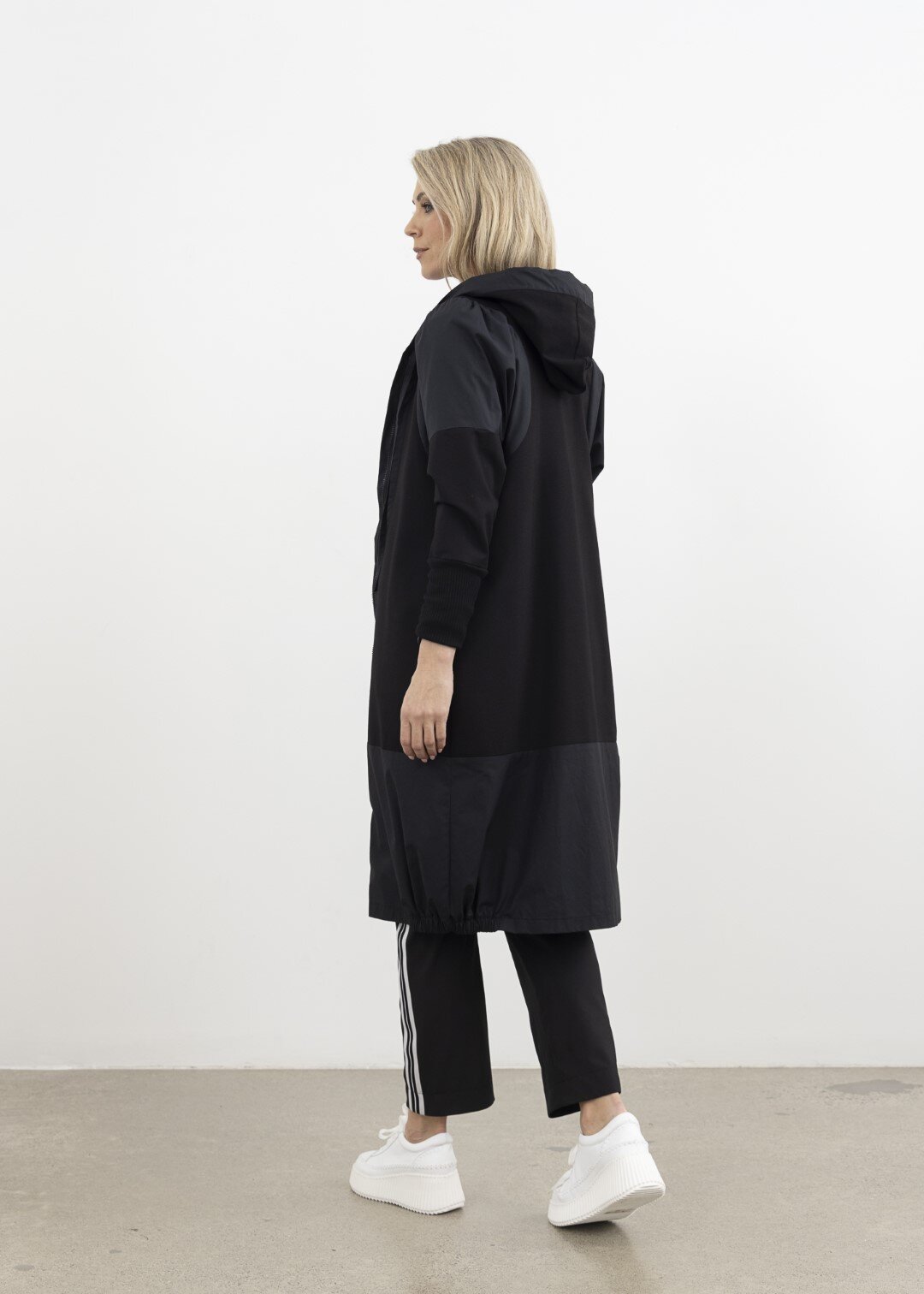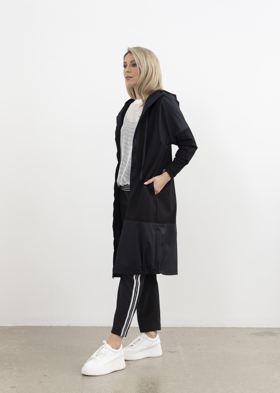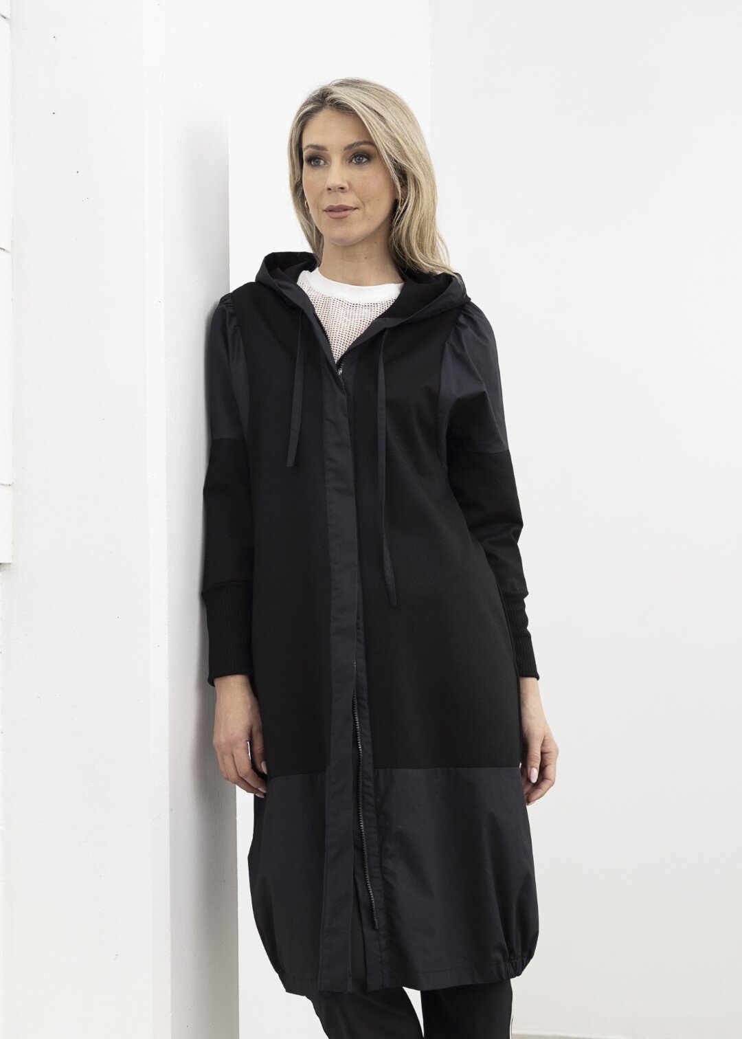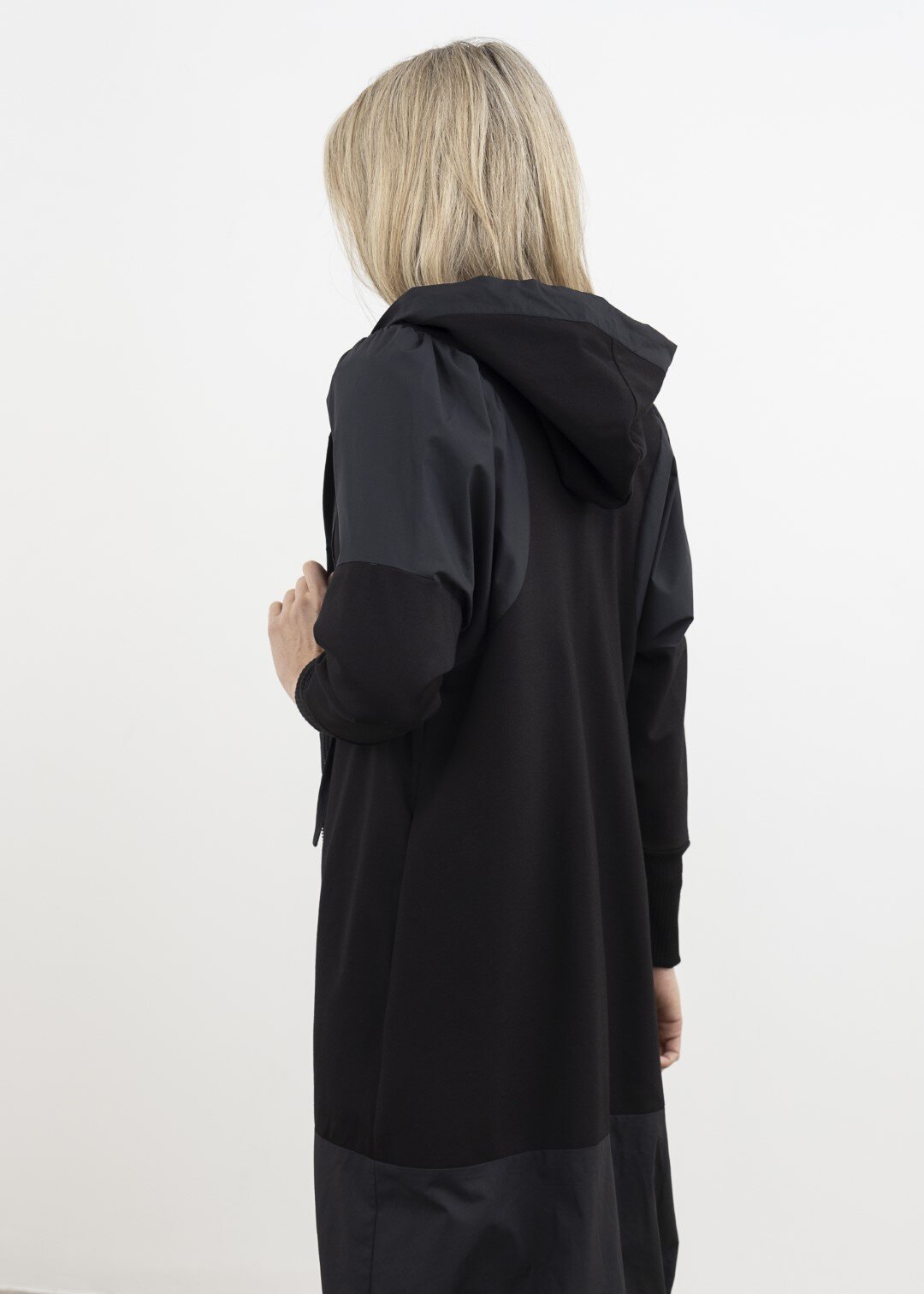 Contrast shoulder, hem panel, and zip