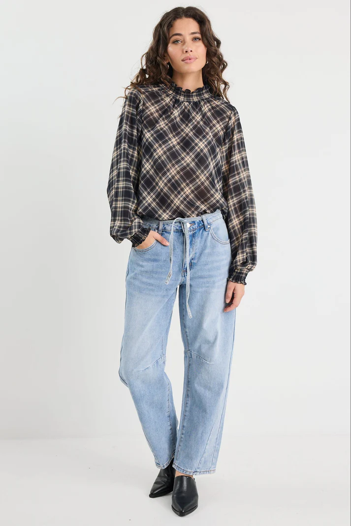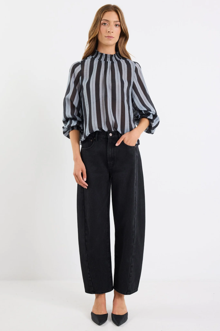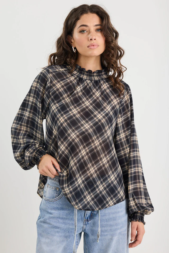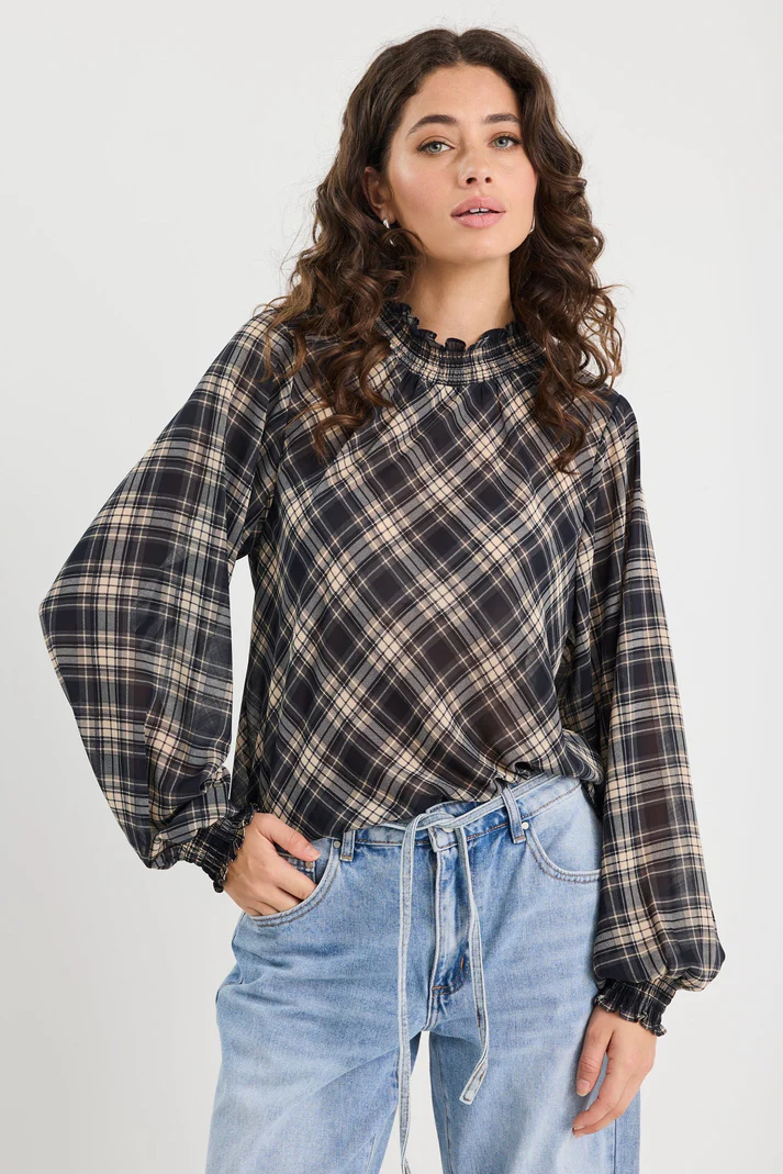 The Embrace high neck top is a fashion-forward and feminine piece, perfect for adding a touch of elegance to any outfit. The top is designed with a high neckline and puff sleeves, which create a romantic and vintage-inspired look. It's perfect for any occasion, whether you're going to work, a night out, or a special event.