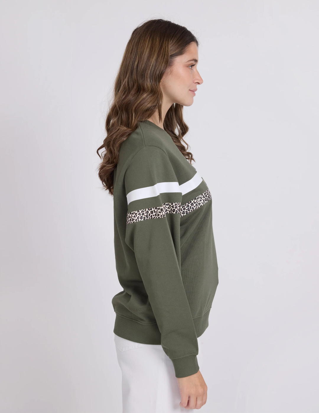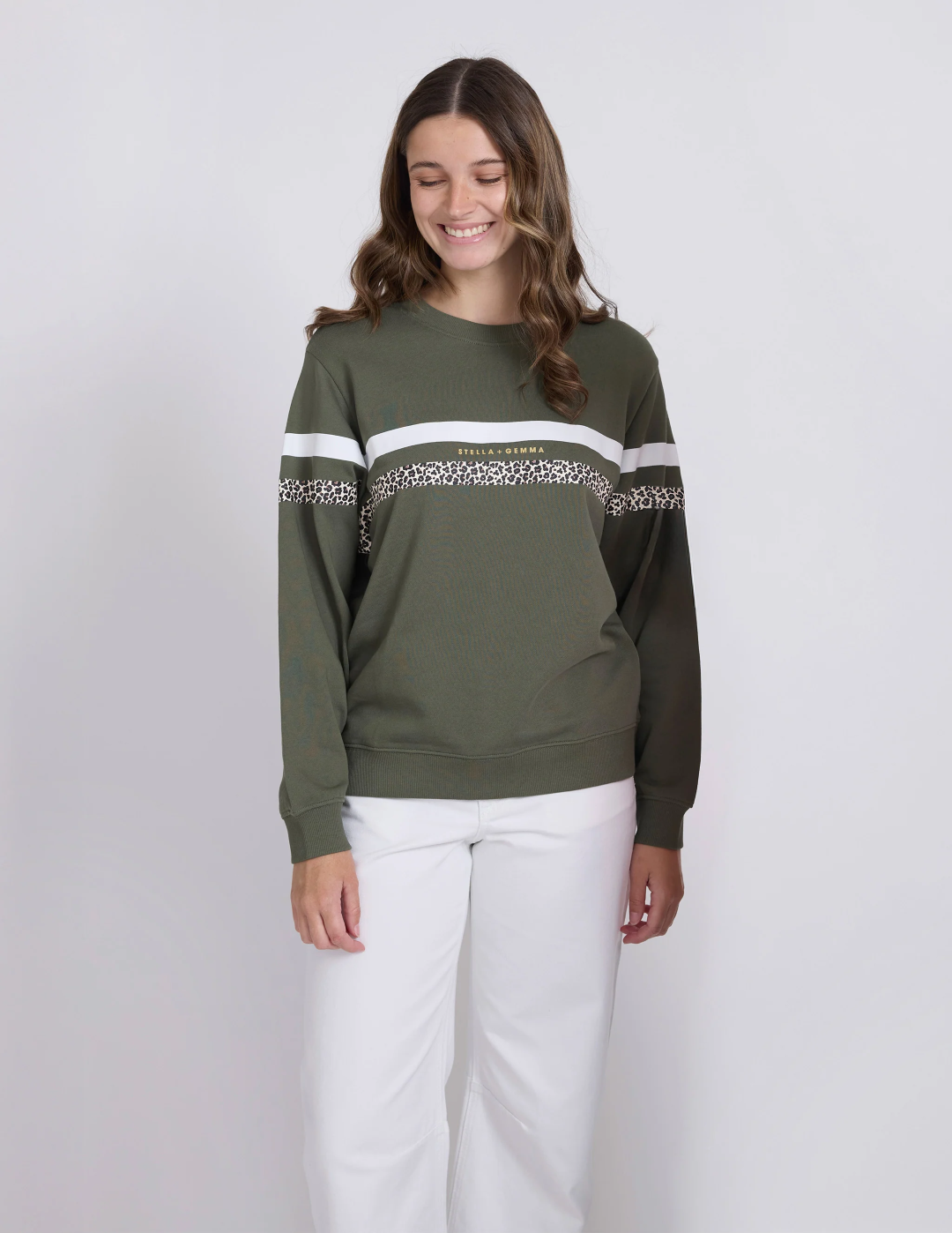 Relaxed crew neckline sweater with set-in sleeves and rib cuffs and hemline