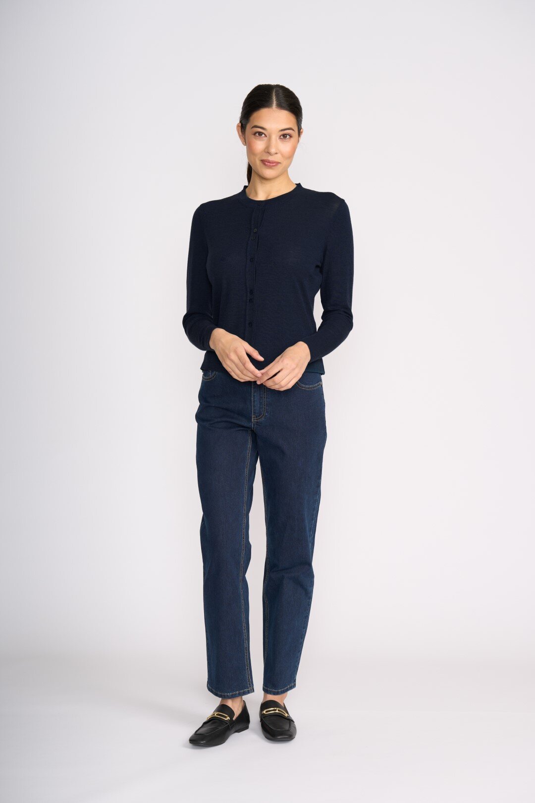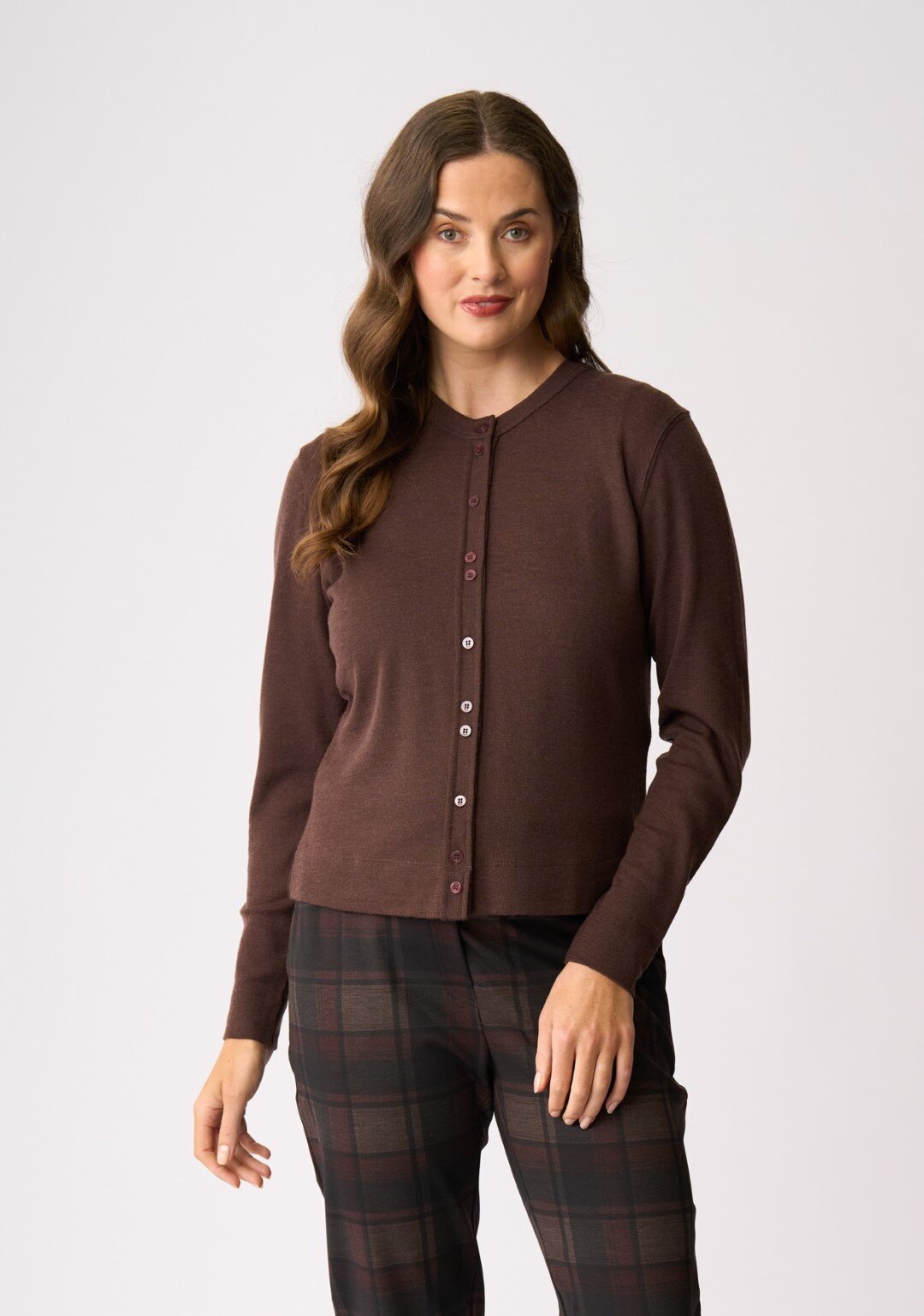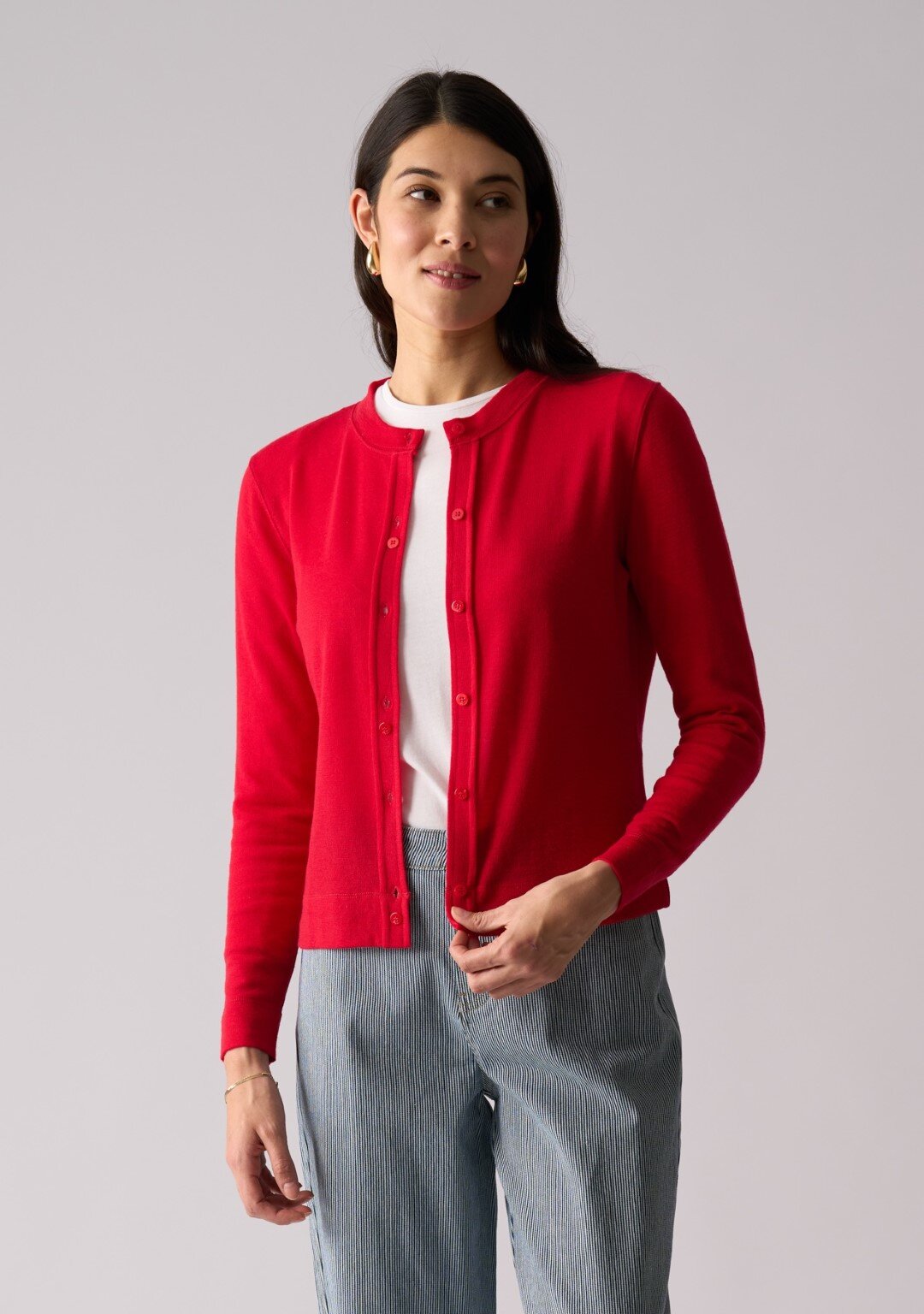 Merino wool cardigan with cluster button detail and closure