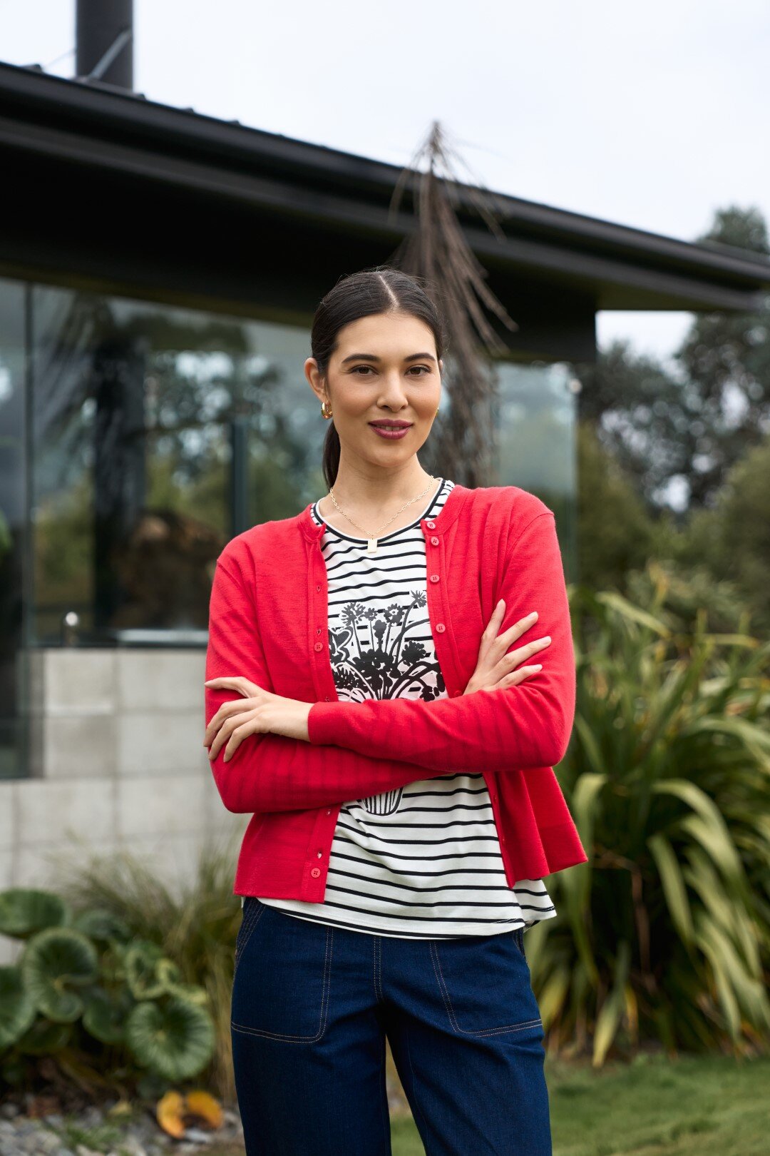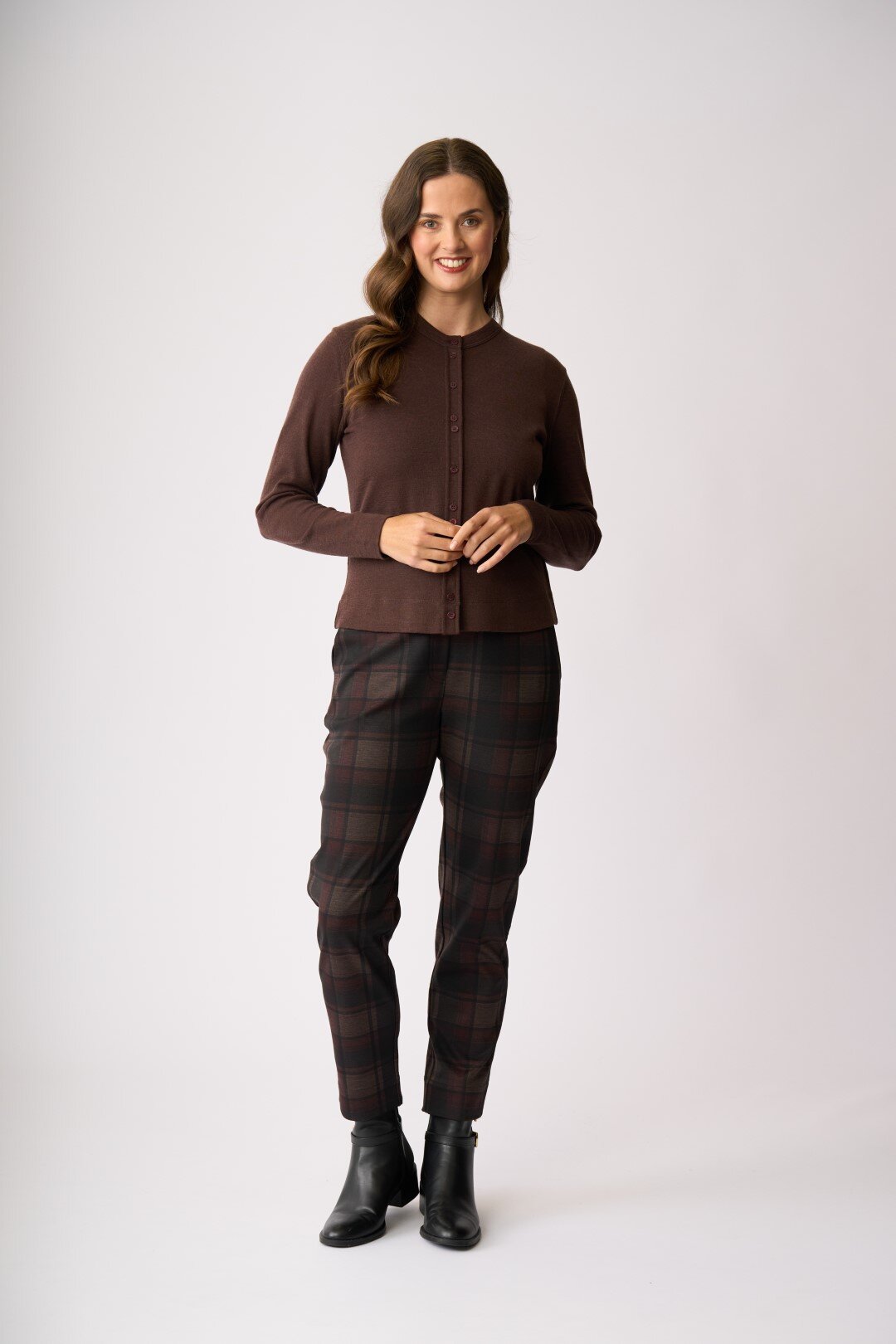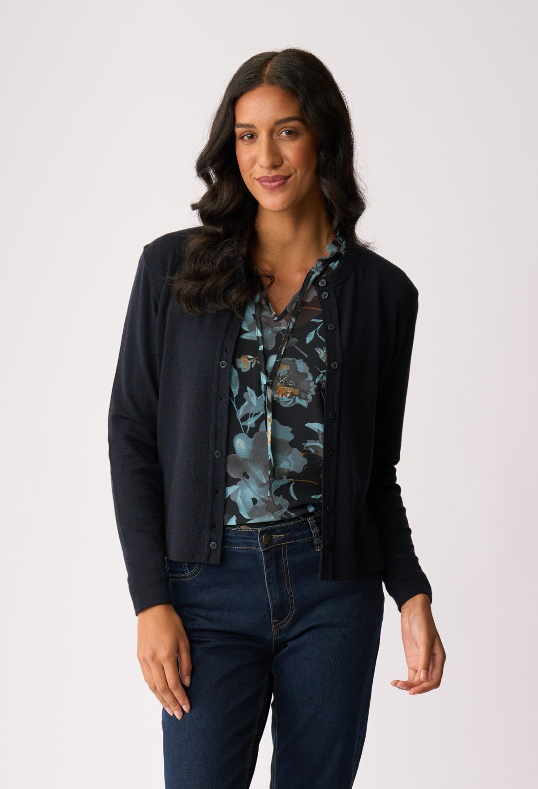 Merino wool cardigan with cluster button detail and closure