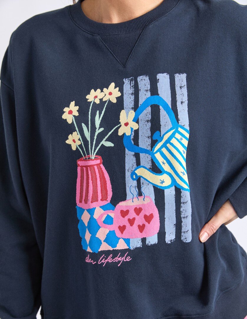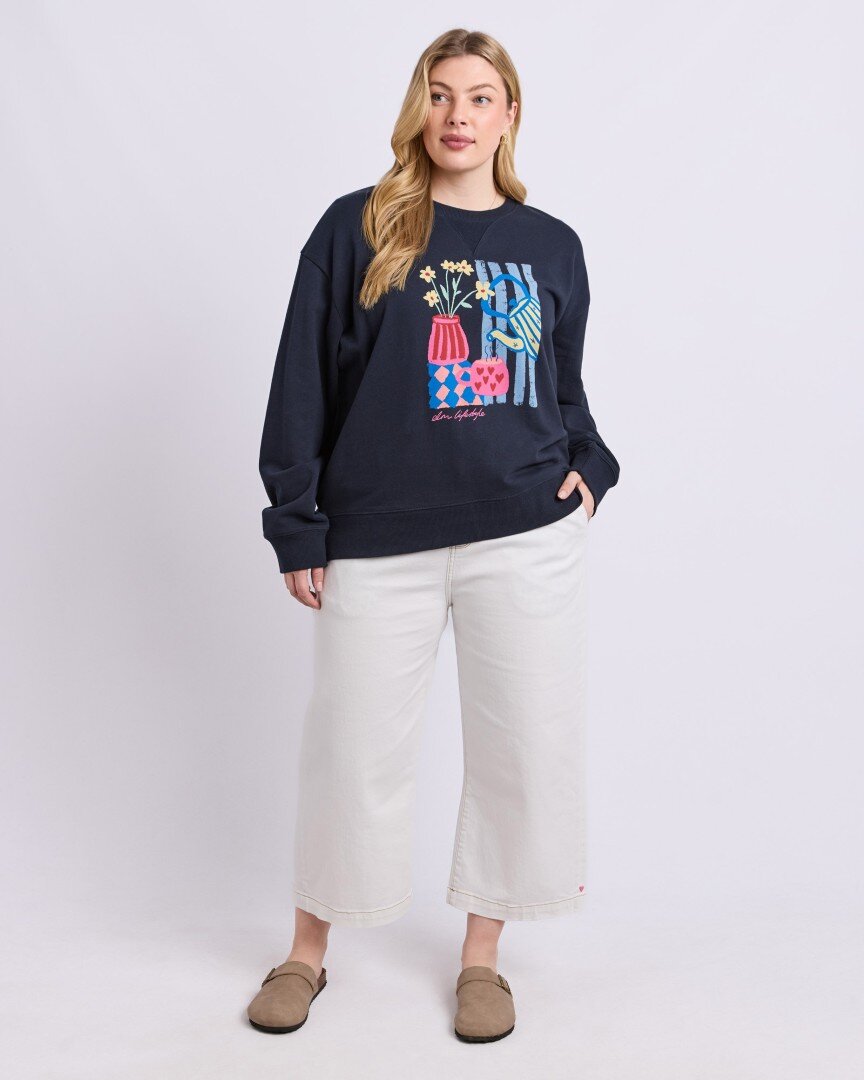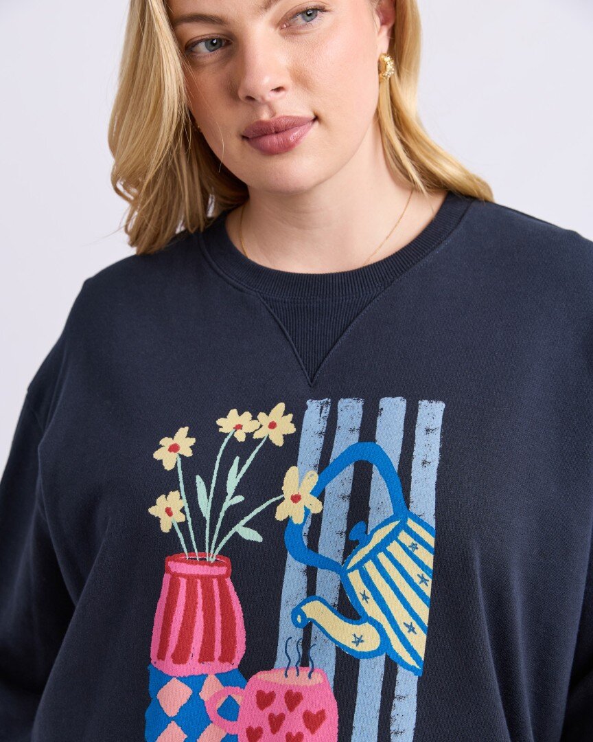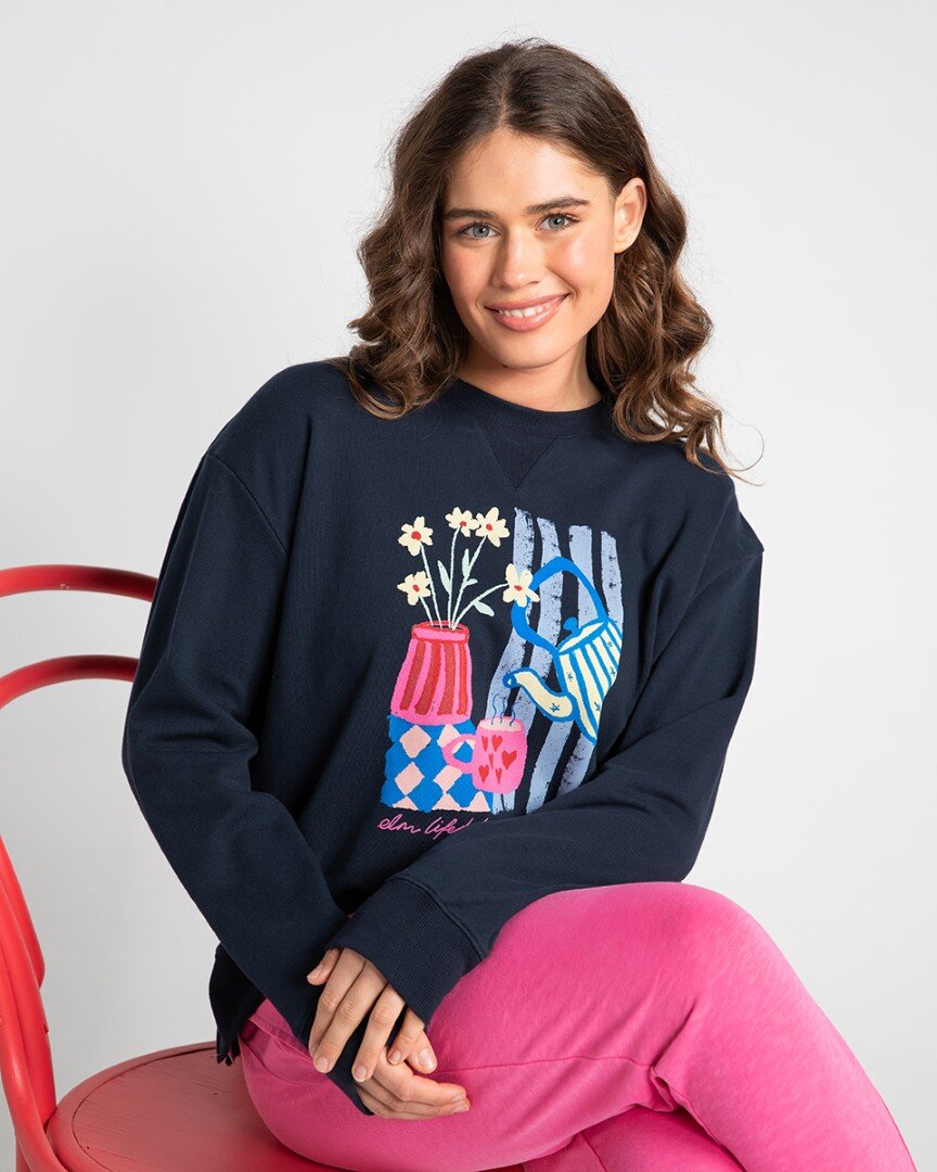 The Elm Fill Your Cup Crew features exclusive Elm artwork for a fun, feel-good everyday layer. Designed in a relaxed fit with side splits and crafted from cotton unbrushed fleece, it’s perfect for casual comfort. Style with denim or relaxed trackpants for laid-back days.