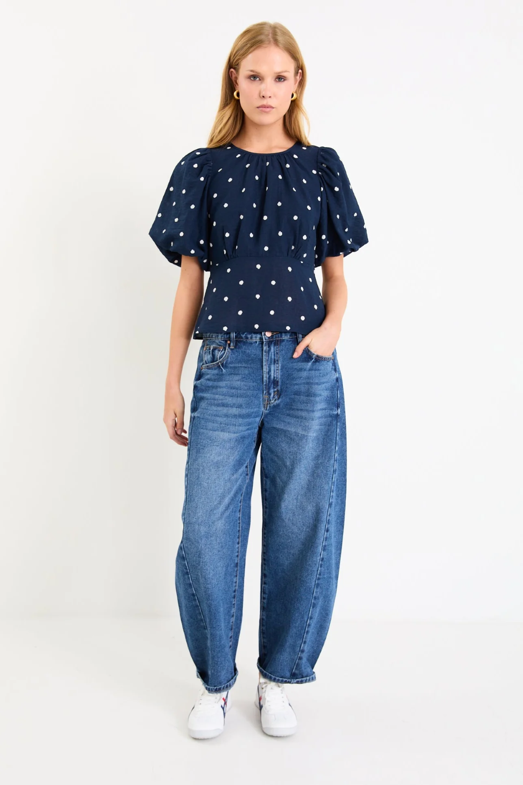 Playful meets polished in the Finali polka dot top, a charming go-to that instantly lifts your everyday style. The puff sleeves add a touch of vintage glamour, while the cinched waist flatters your shape in the most effortless way. Perfect for dressing up with wide-leg trousers or keeping it casual with your favourite jeans.