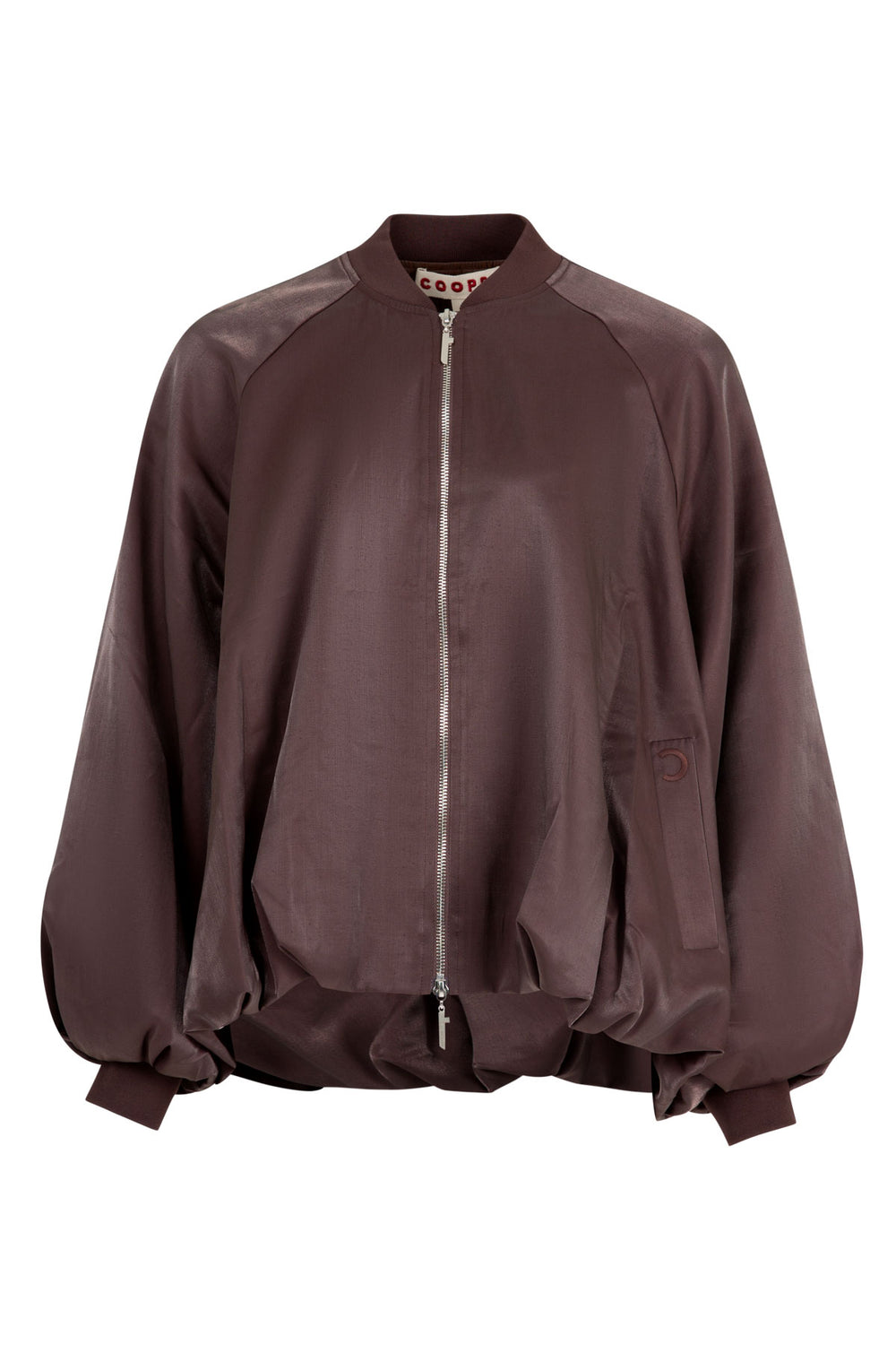 Effortless luxe meets contemporary cool in this ‘Flowerbomb’ bomber style jacket. Crafted from silky lyocell with the ‘Shimmer and Shine’ fabrication, it offers a fluid, refined finish. Featuring a playful balloon hemline and sleeves that add unexpected volume, it zips up the front with ease and is framed by striking contrast jersey neck and cuffs for a polished edge. Perfectly balancing relaxed silhouette with chic details, this jacket is your go-to for modern layering with a sophisticated twist.