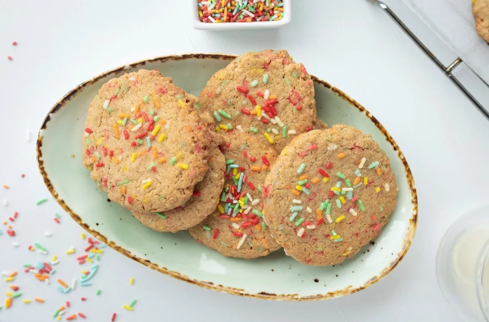 Our Funfetti Sugar Cookies are crispy, crunchy and bursting with colorful sprinkles in every bite! Made with rich buttery dough and just the right amount of sweetness, these cookies bake to golden perfection with a melt-in-your-mouth texture. Perfect for parties, celebrations, or a fun treat anytime!