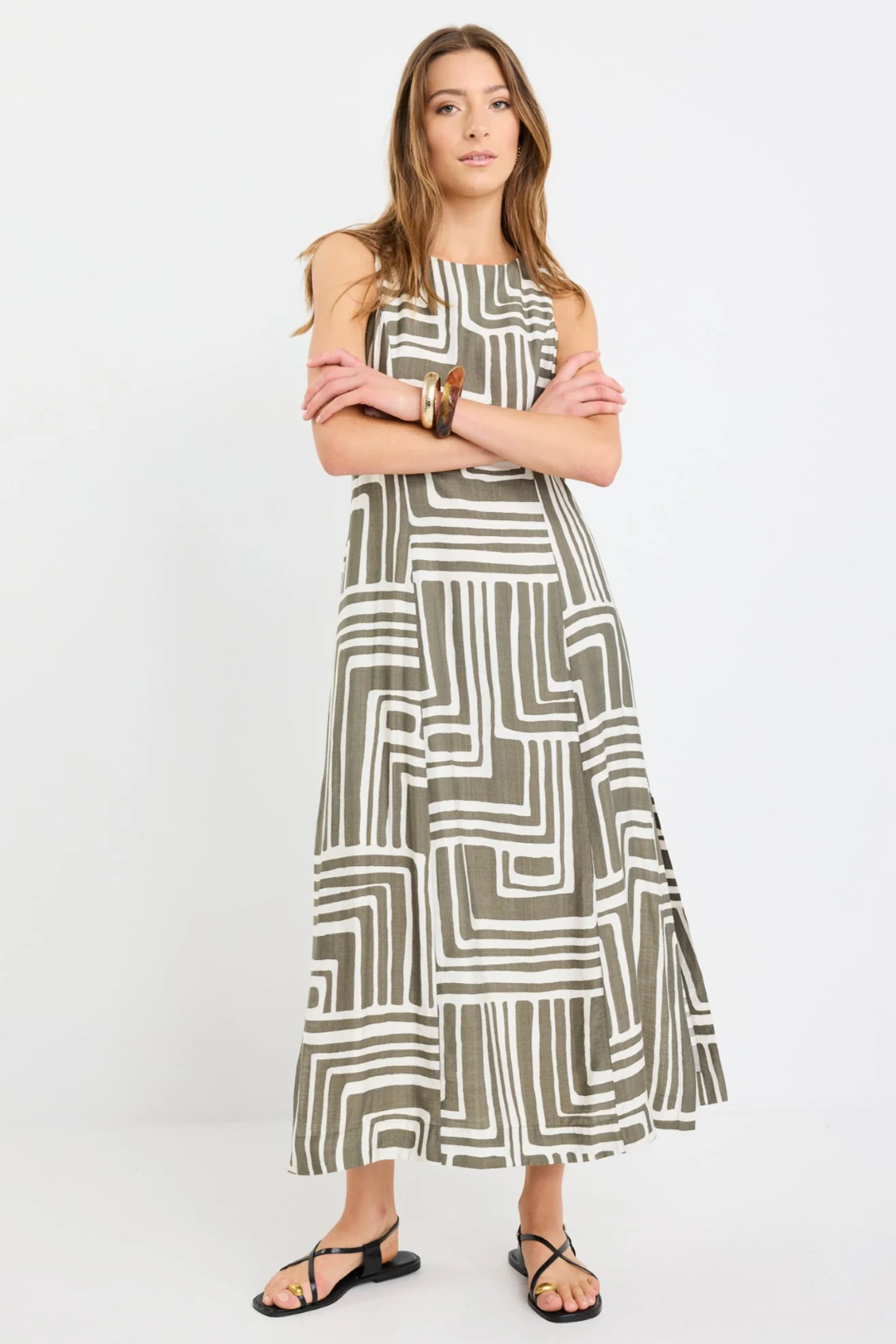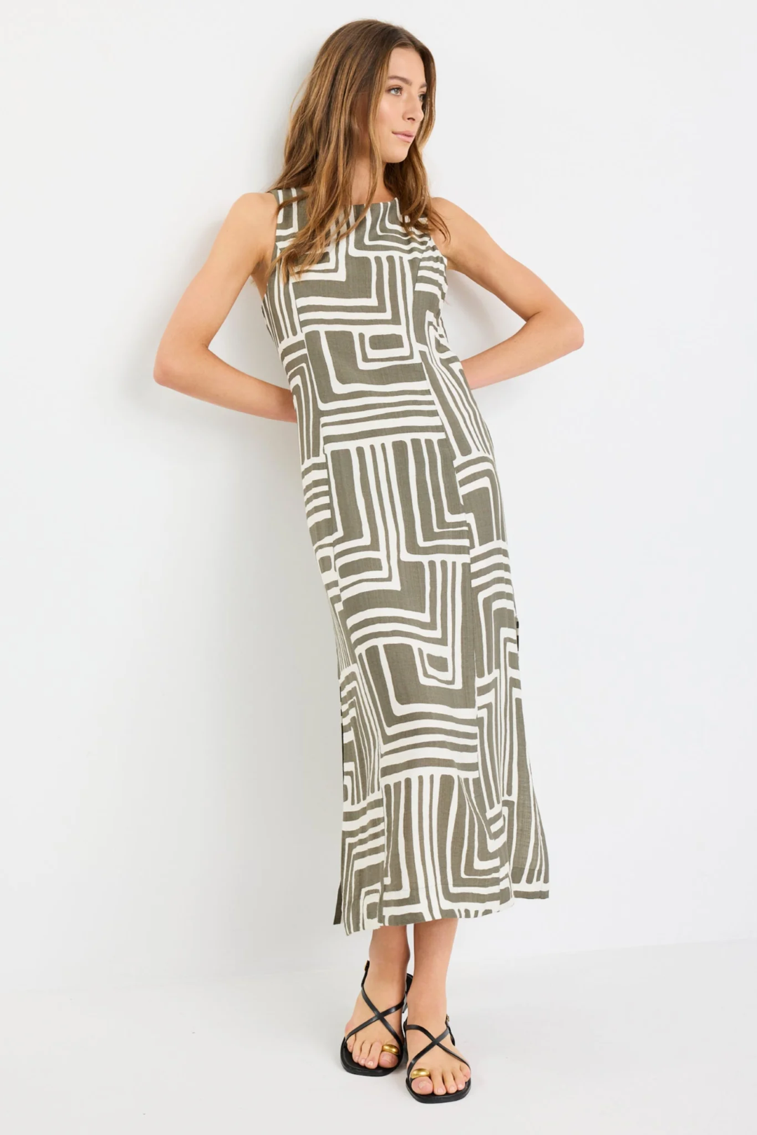 The Future ink midi dress is a striking mix of simplicity and bold design. With its clean crew neckline and sleeveless cut, the silhouette is timeless, while the white side stripe gives it a modern, statement edge. Made from a linen blend, it drapes beautifully and feels light against the skin.