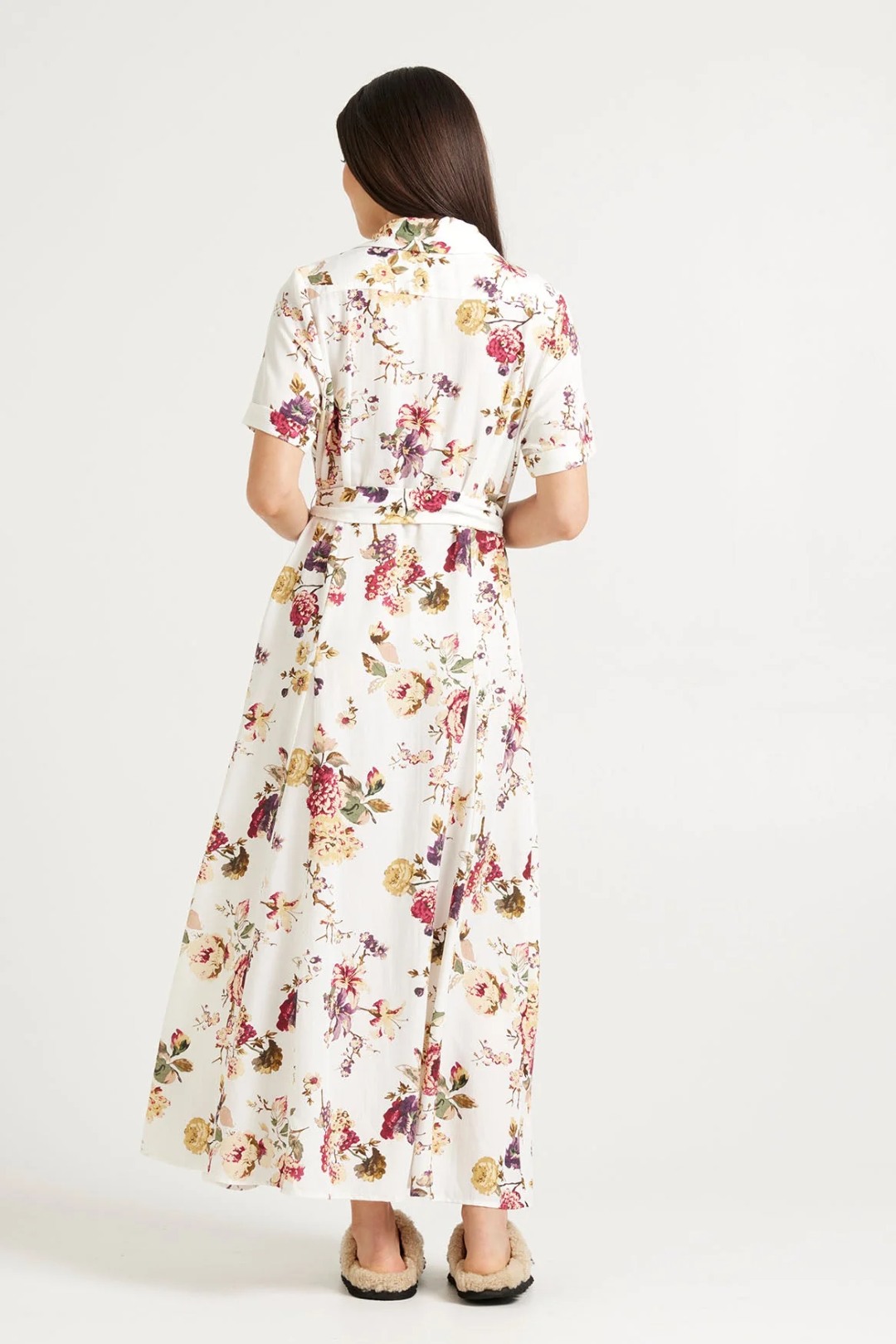A stunning tencel linen dress in a delicate vintage floral print. The flattering fit makes her a dream to wear while the feature godet panels through the A-line skirt move beautifully. Wear all year round, layering with boots & a coat in colder weather.