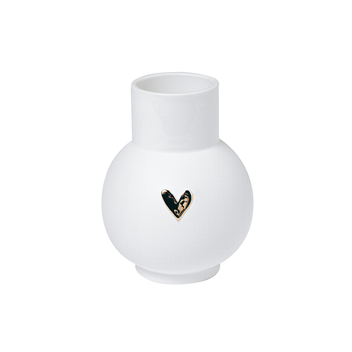 Made from white porcelain, unglazed on the outside & glazed on the inside, with gold detail.