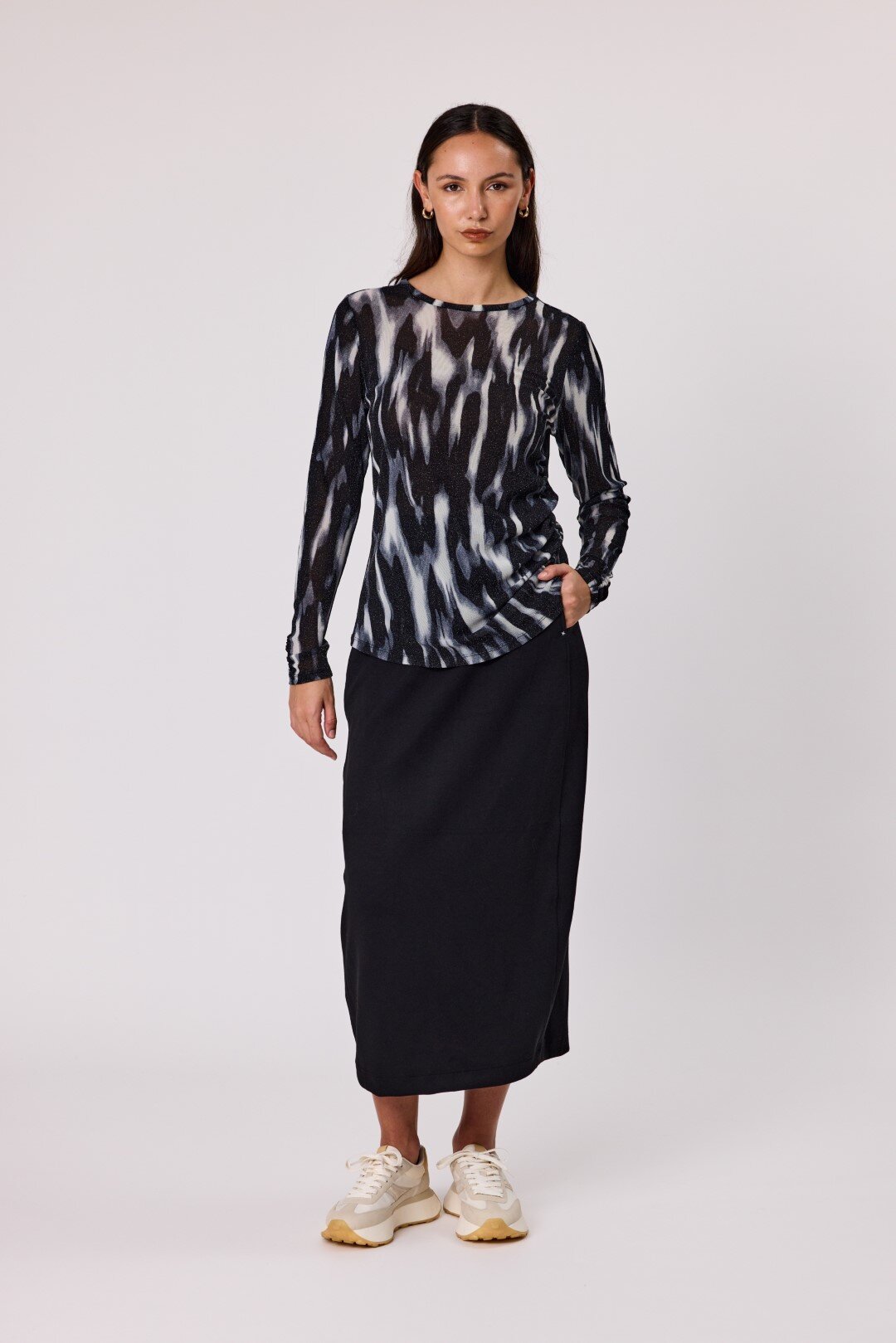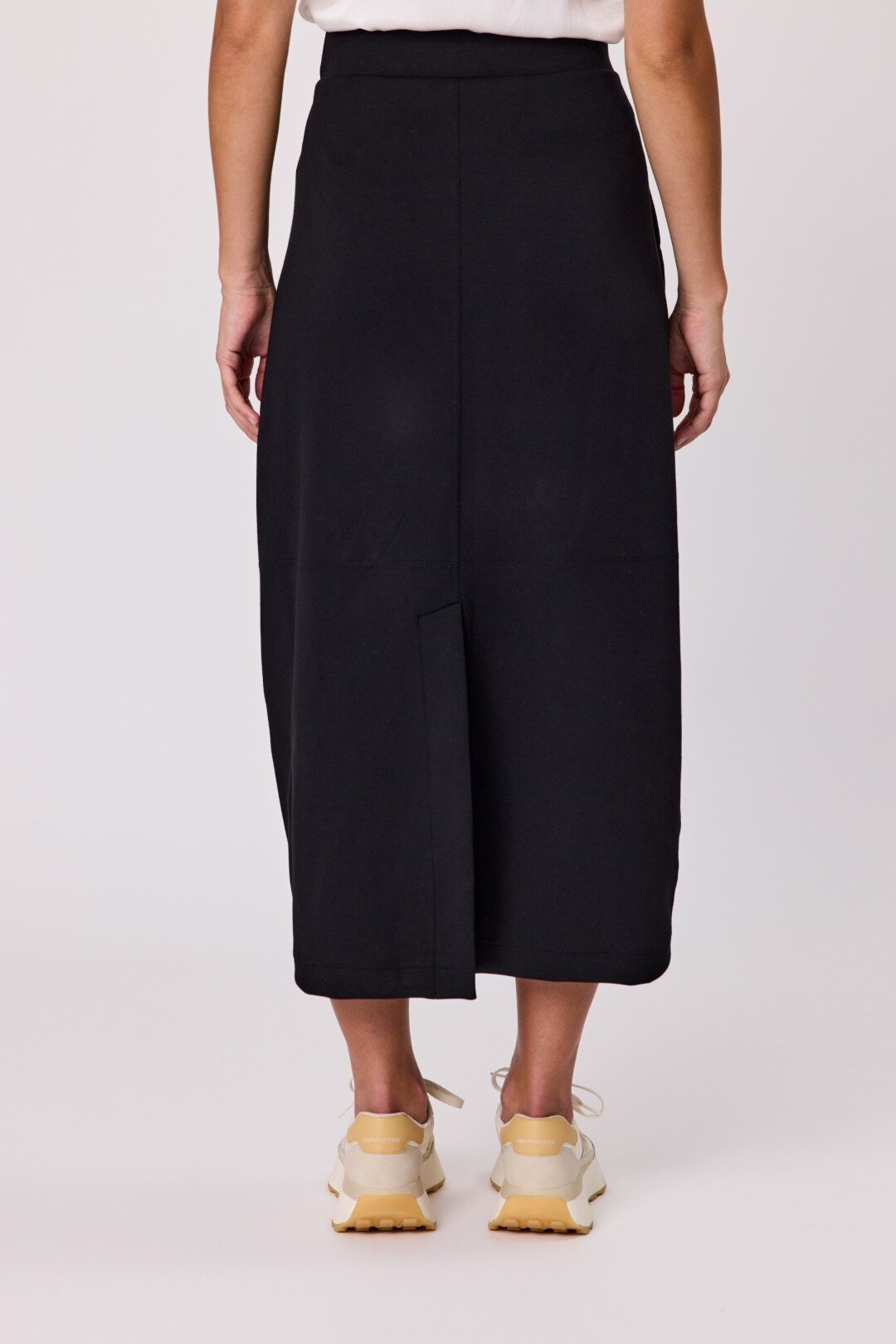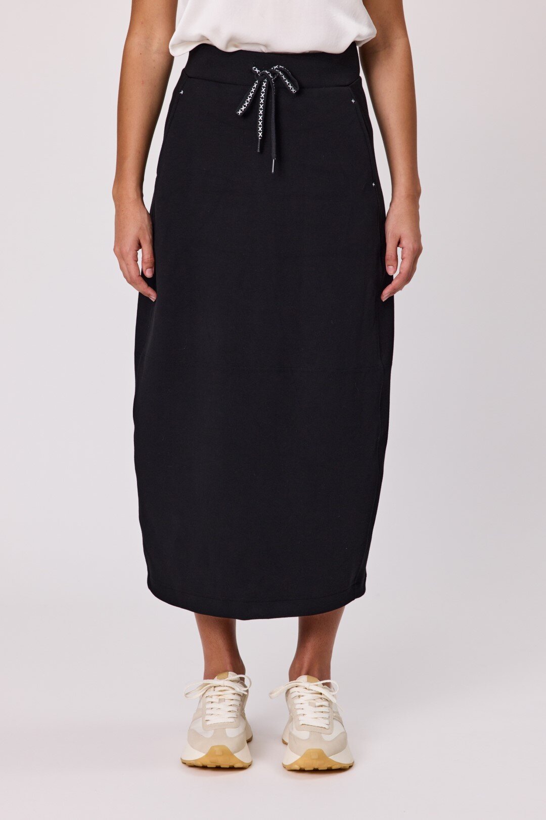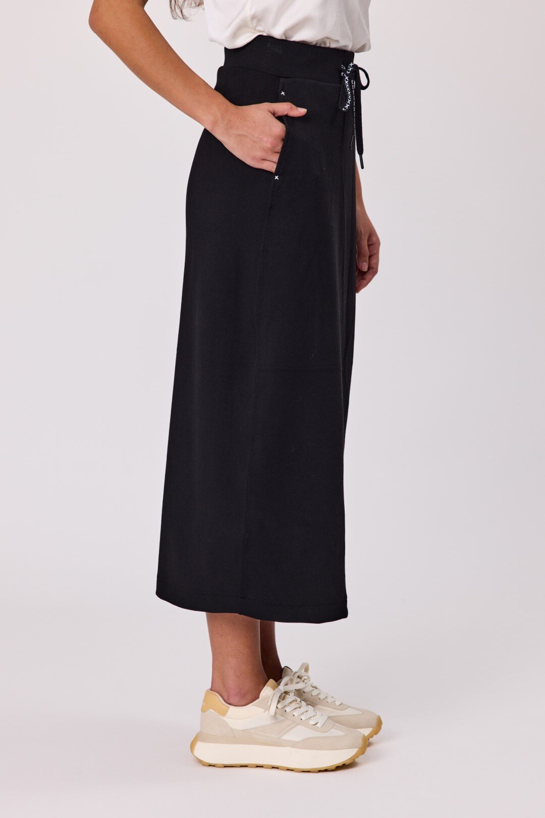 Stay comfy and stylish with this black skirt featuring a fully elasticated waistband and a functional drawcord for an adjustable fit. With side pockets for added convenience, it’s perfect for everyday wear.