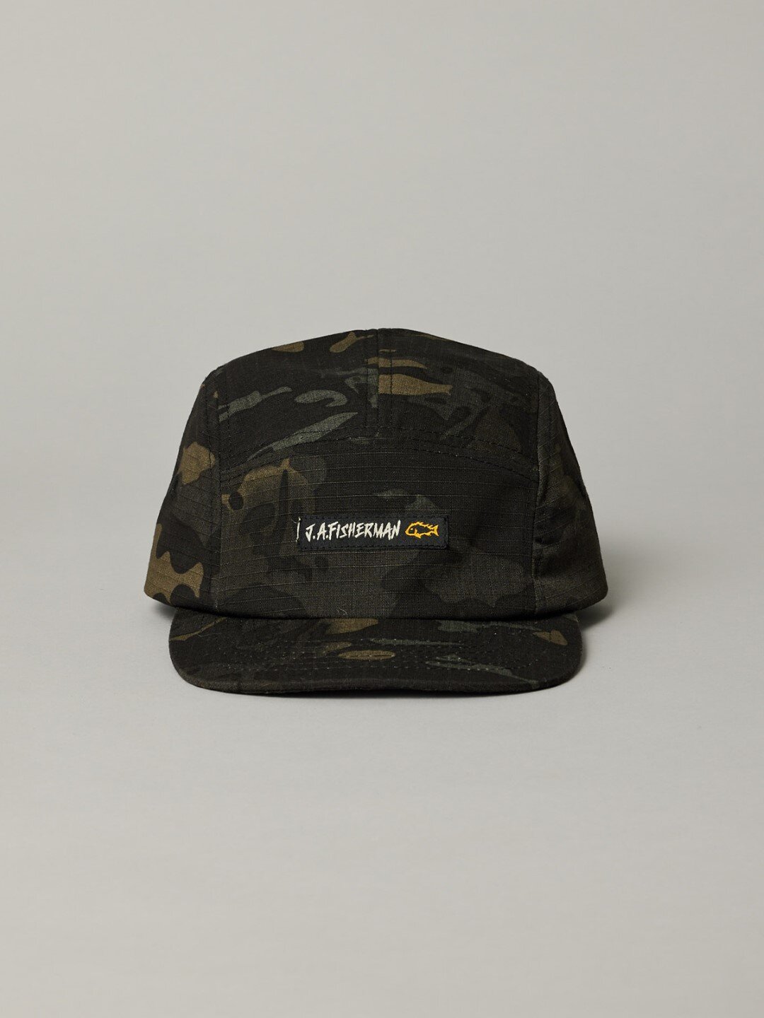 The J.A.Fisherman is a five-panel design with a sewn on front label. Features a low profile, unstructured design with ventilation eyelets. The nylon adjustable back strap ensures the right fit on just about anyone.