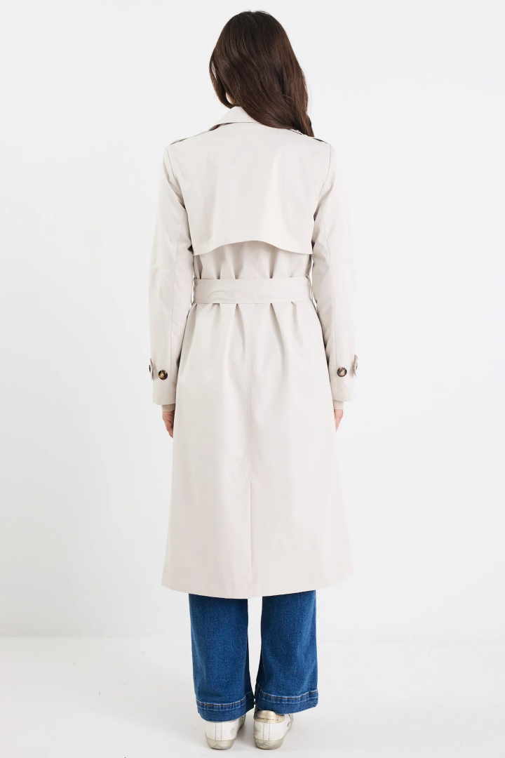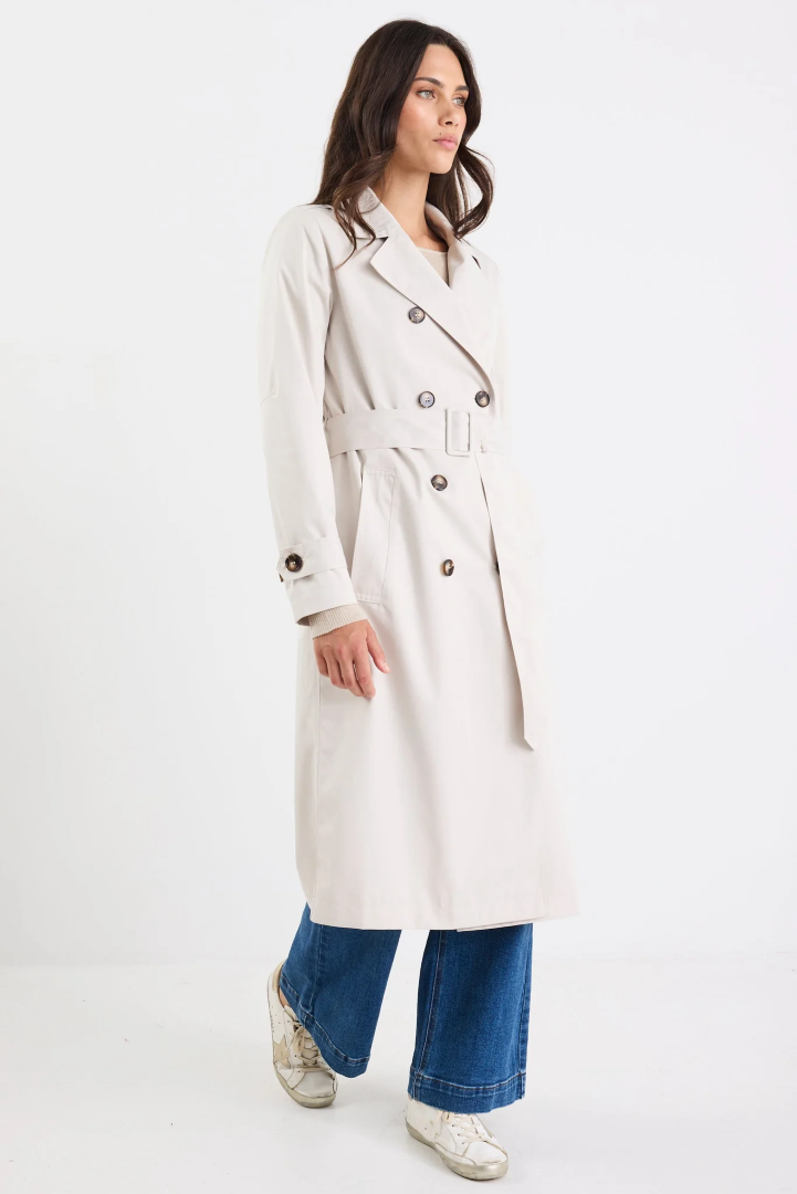 Timeless with a twist, the Kensington trench is your outerwear essential for polished, everyday style. With its fluid drape and double-breasted cut, it blends elegance with effortlessness, whether you're layering it over denim or tailoring. The soft bone hue keeps things clean and classic, ready for any high-low moment.
