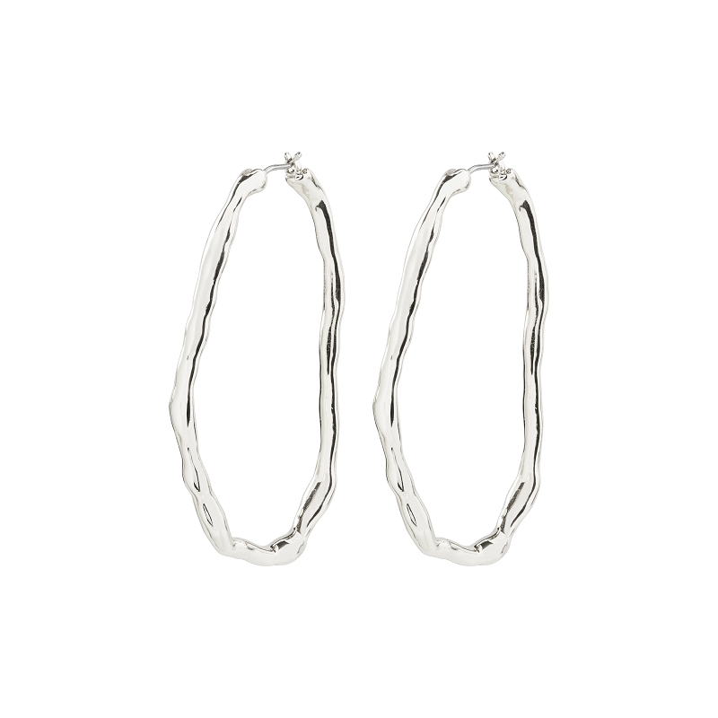 Light up with silver-plated hoops from Pilgrim's LIGHT collection. A set of slim maxi hoops with handcrafted wavy shapes that create an eye-catching effect when light reflects off the shiny finish. The perfect match for both urban cool and sleek sophistication. Style the earrings with a cropped blazer and wide jeans for a powerful look. A recycled item that is made from 75% min. recycled material.