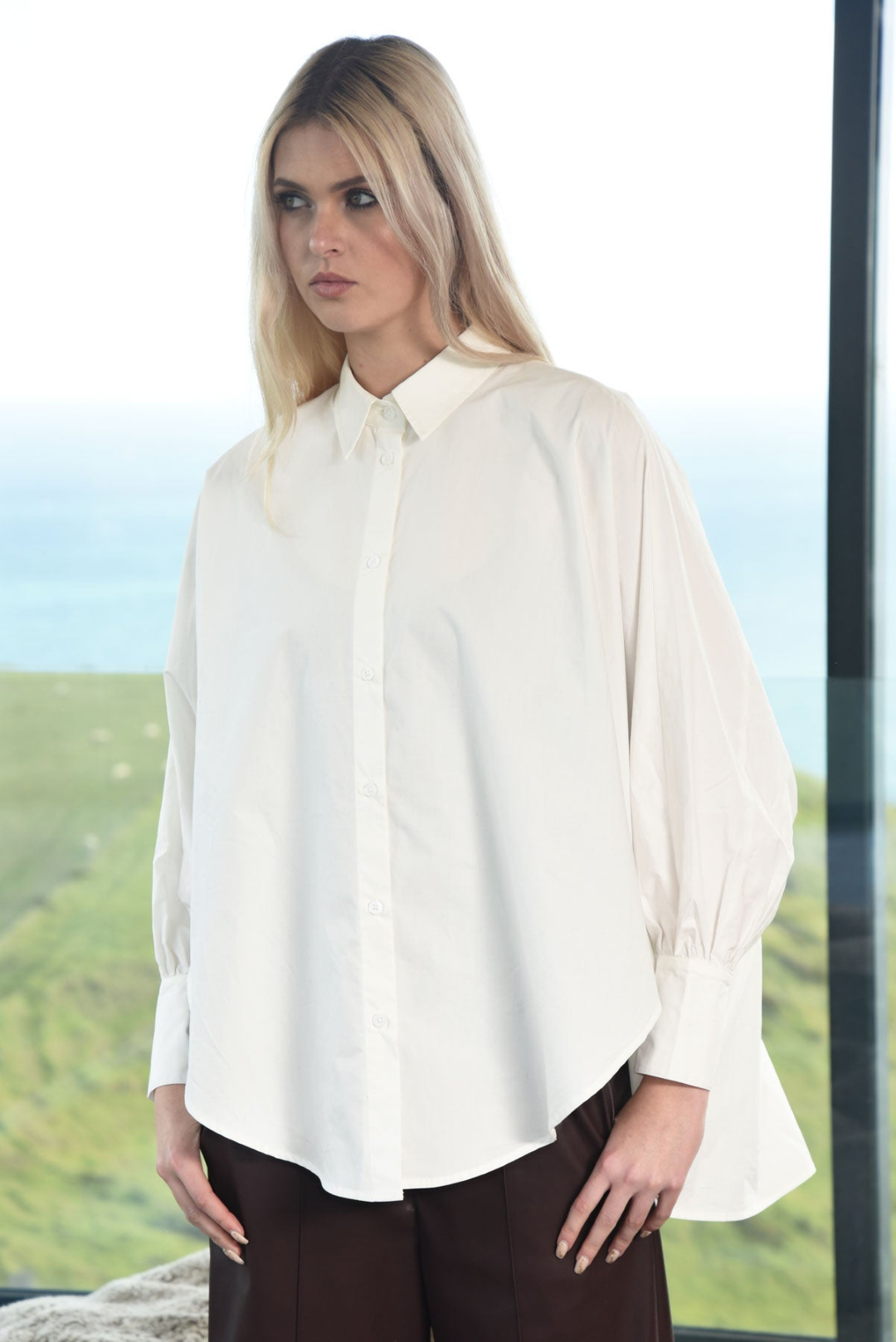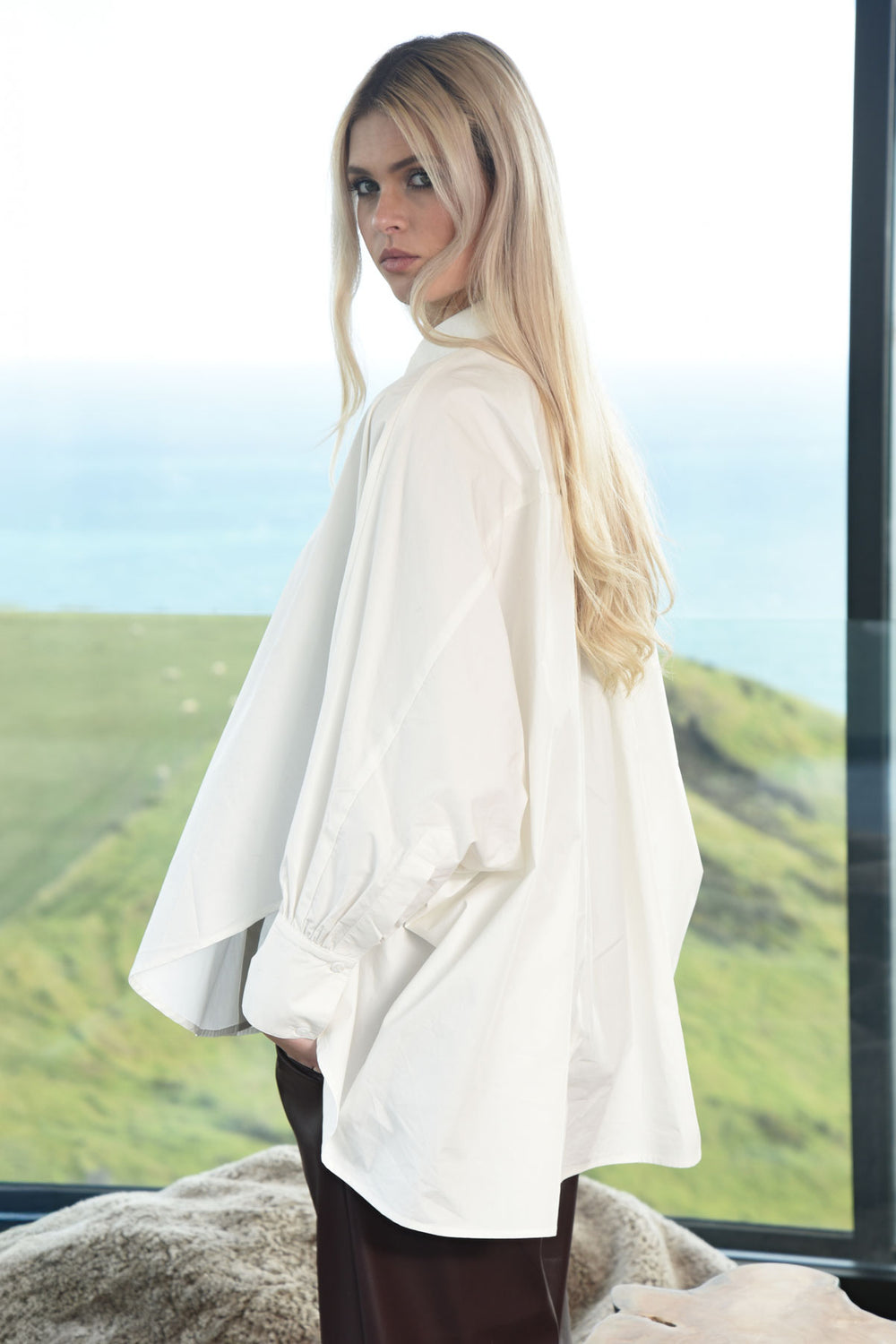The ‘Living the Dream’ shirt brings a fresh, edgy twist to casual dressing. With its effortless relaxed silhouette and contemporary high low hem, it flows with movement and attitude, perfect for layering or wearing solo. Featuring batwing, gathered sleeves, a logo patch and gathered back detail, it’s casual at heart but undeniably modern, and a versatile staple that adds a subtle edge with the ‘Refined Touch’ fabrication.