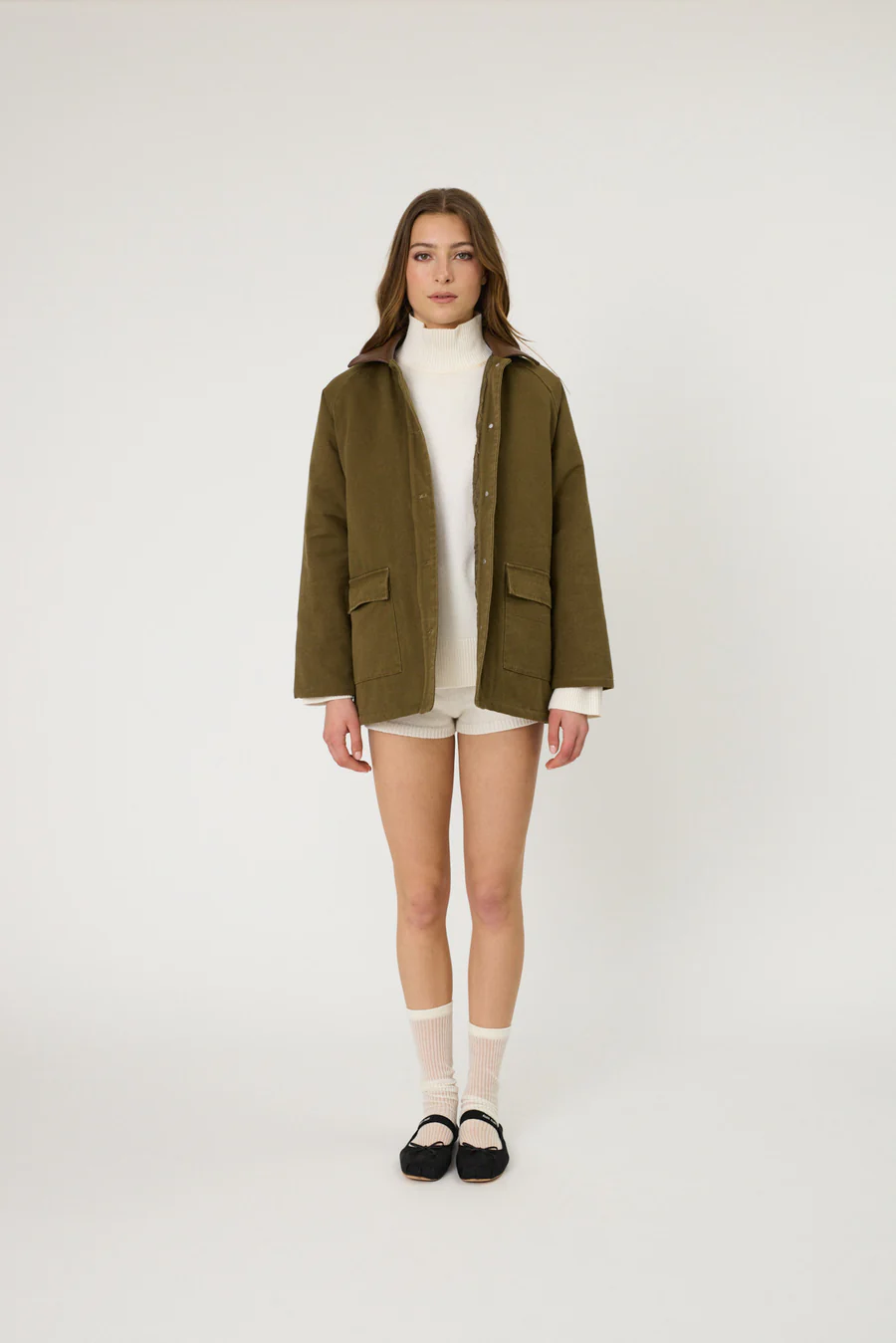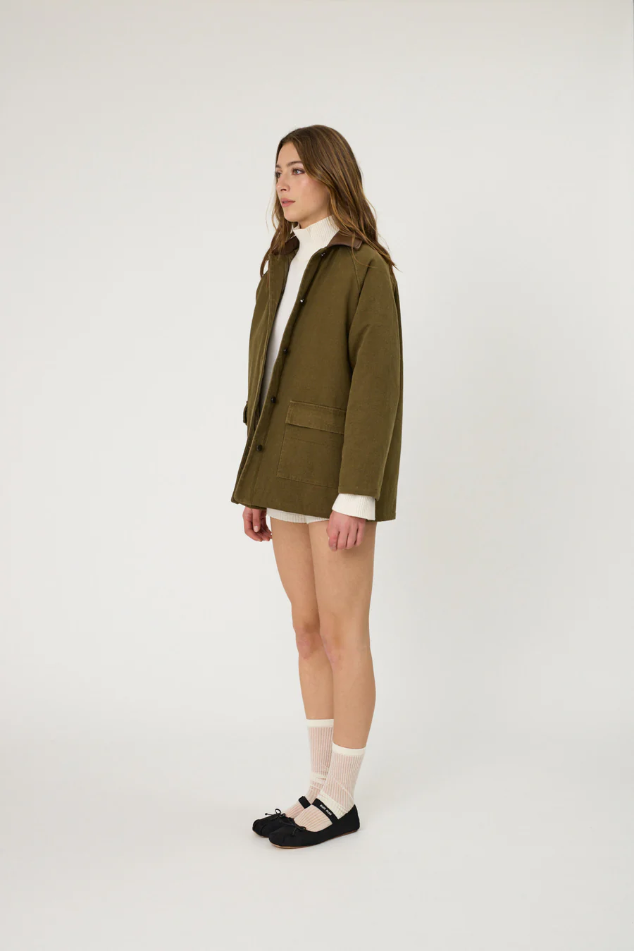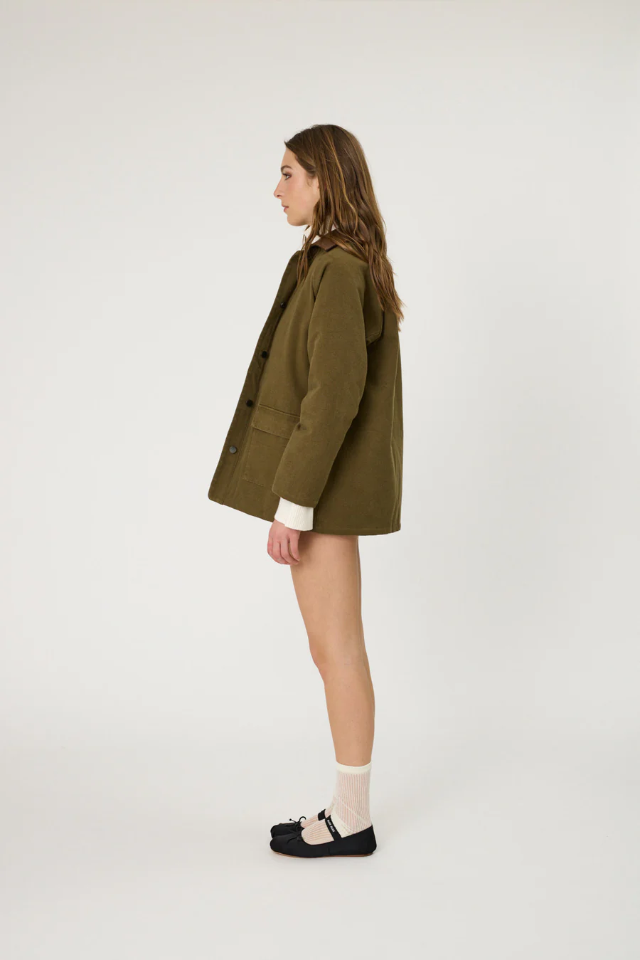 The Noel is a relaxed work jacket. A must have this season, crafted from a quality cotton canvas with front pockets and button front closure.