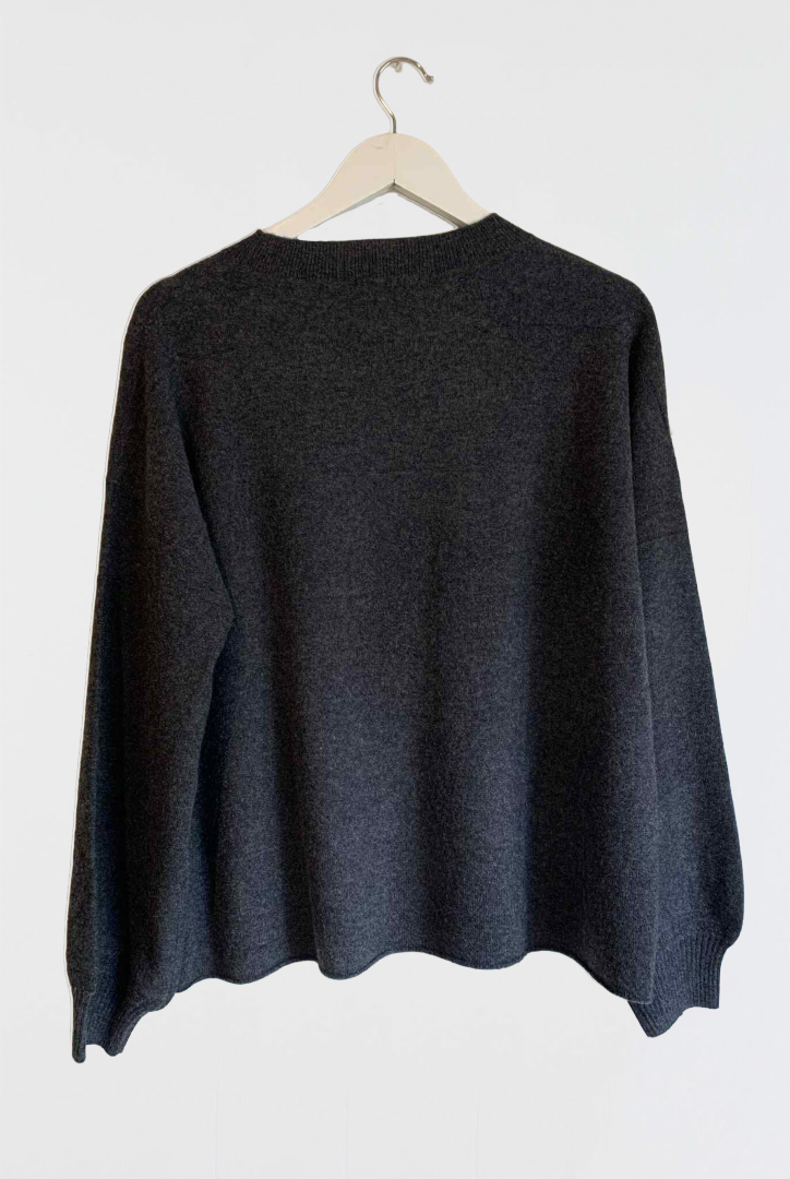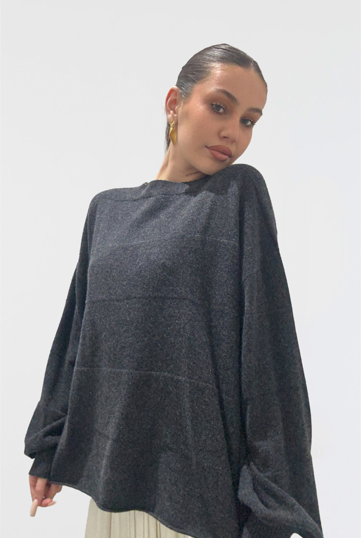 The Open My Heart Sweater presents a vision of understated luxury. Meticulously crafted from premium cotton yarn, this knitwear piece features distinctive self-textured thick stripes and a refined round neckline. The considered drop shoulder construction and long sleeves create an elegant, relaxed silhouette, while the straight hemline offers a polished finish to its sophisticated boxy profile.