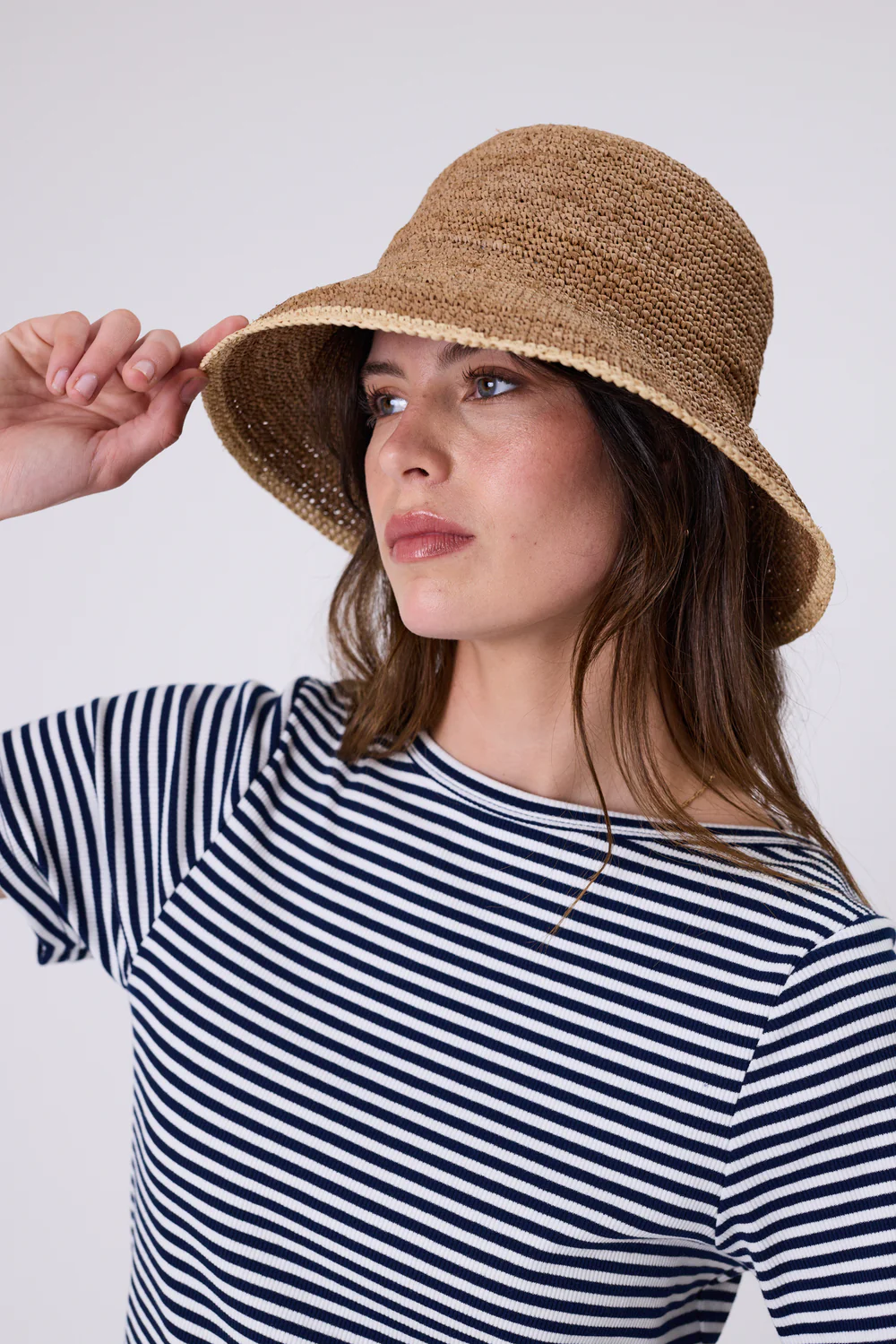 From beach days to BBQs, our Positano Bucket Hat is your chic essential for sunny days. Made from 100% Raffia, this bucket hat is skillfully handwoven and hand-dyed by artisans in Madagascar. Lightweight and packable, it’s easy to roll up and take on the go. Crafted with tea-coloured raffia accented with a natural trim. The adjustable internal cotton twill tie ensures the perfect fit.