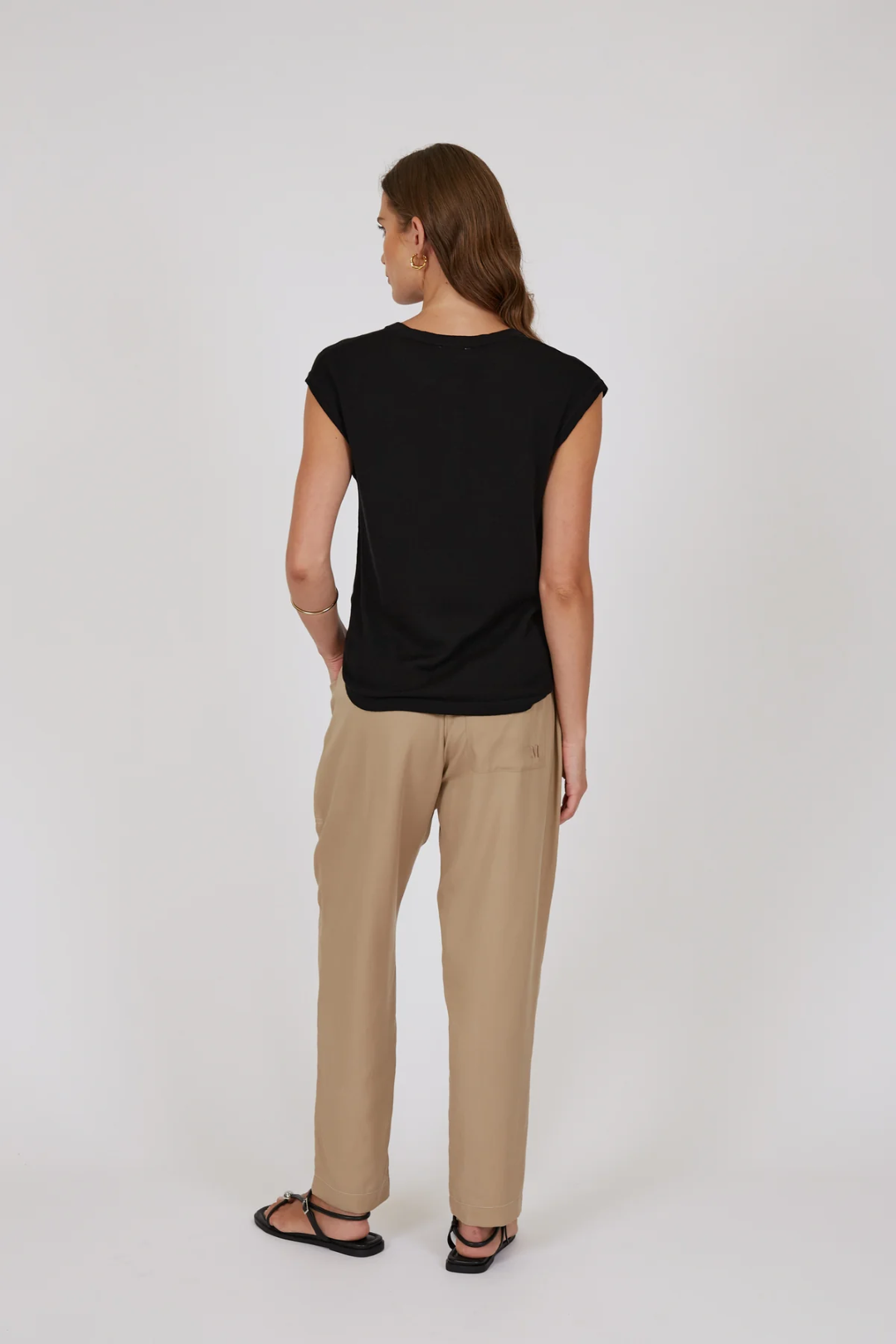 Back by popular demand, the Prima Knit Top is a versatile wardrobe essential. Crafted from a luxurious cotton-modal blend, it feels soft against the skin and drapes beautifully over the body. Designed with a flattering V-neckline and 3/4 placket, complemented by cap sleeves, this top is effortlessly chic. Perfect for trans-seasonal styling, we love pairing it with the Palma Pant for breezy summer evenings.