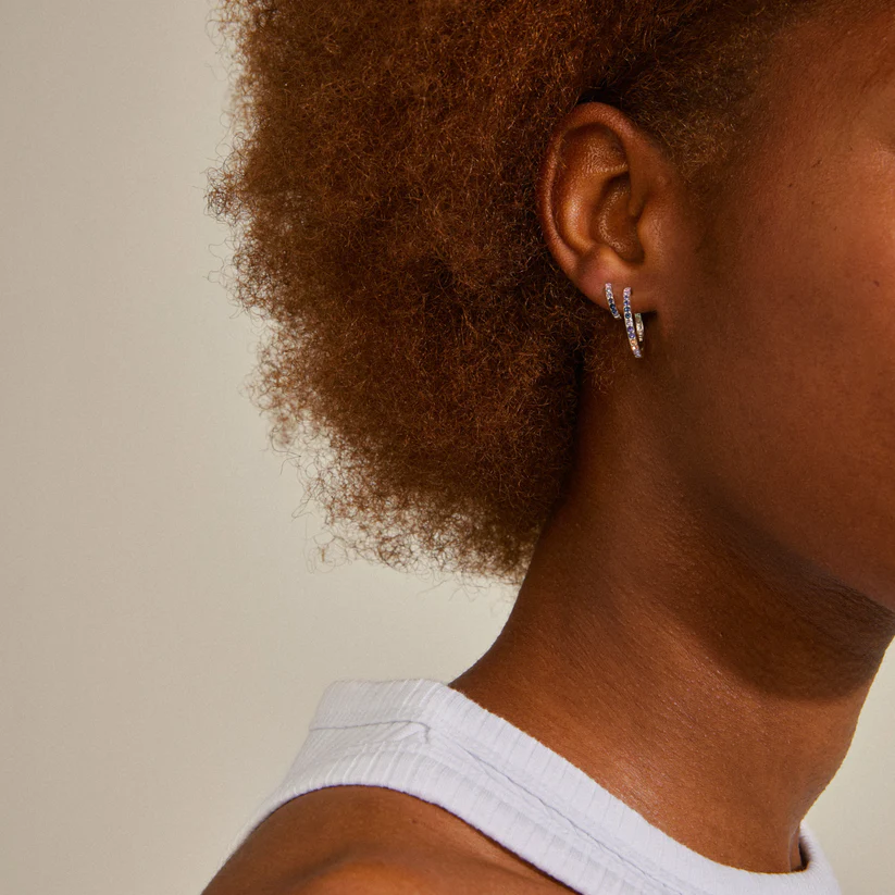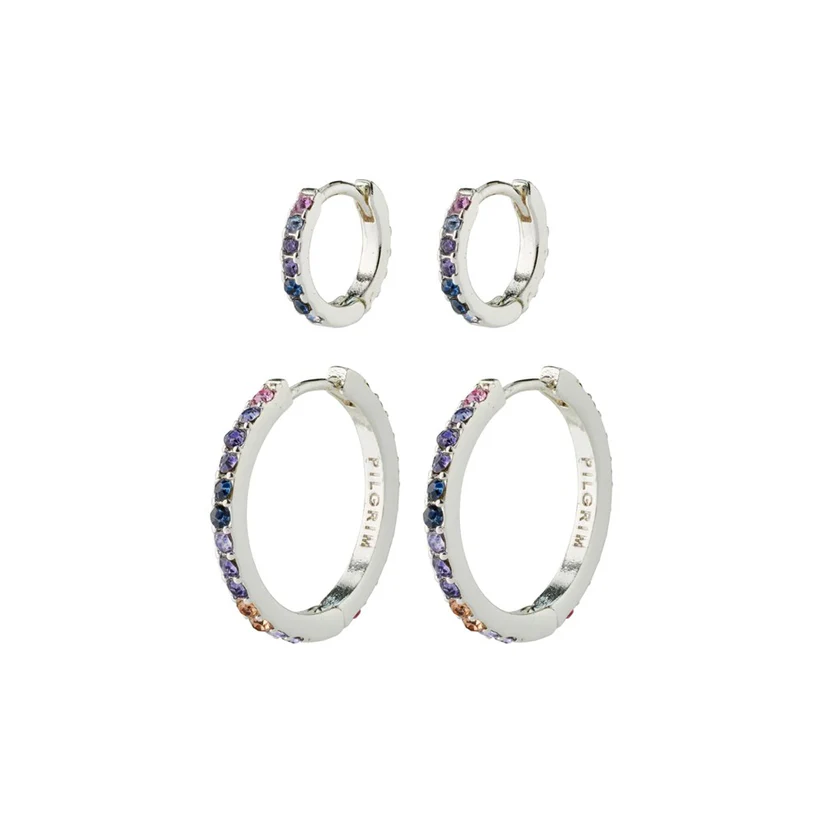 Mix, match and make it your own! Silver-plated crystal hoops from Pilgrim. The classic hoop design of the earrings is given a glam twist with numerous Preciosa crystals in shades of blue and champagne, creating a unique contrast to the minimalist look. The sleek, angular design of the earrings in small and medium size make for a set of evergreens that are sure to complete your outfit for both basic and glam occasions.