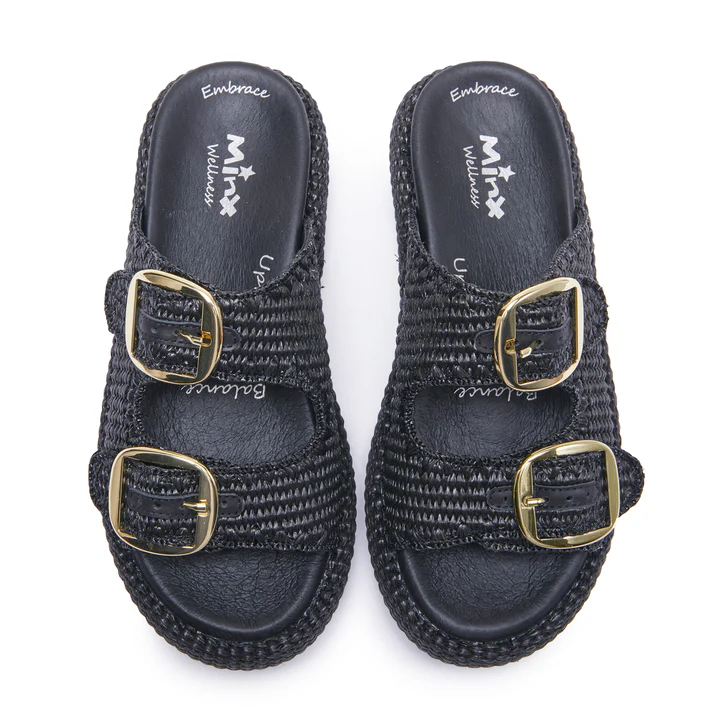 Relax is a rattan slide that brings effortless summer style to your wardrobe. Dual adjustable Velcro buckles let you personalise the fit, with metal finishes that complement each rattan colourway. The open round toe and full rattan jute-wrapped, sculptural sole combine modern comfort with elevated design. Open at the heel and inspired by artisanal craftsmanship, Relax transforms casual dressing, perfect with linen separates, pattern twin sets or denim weekend looks.