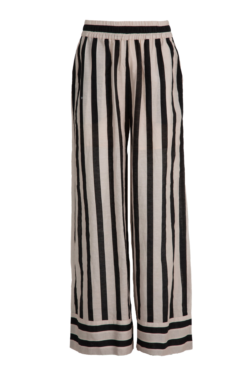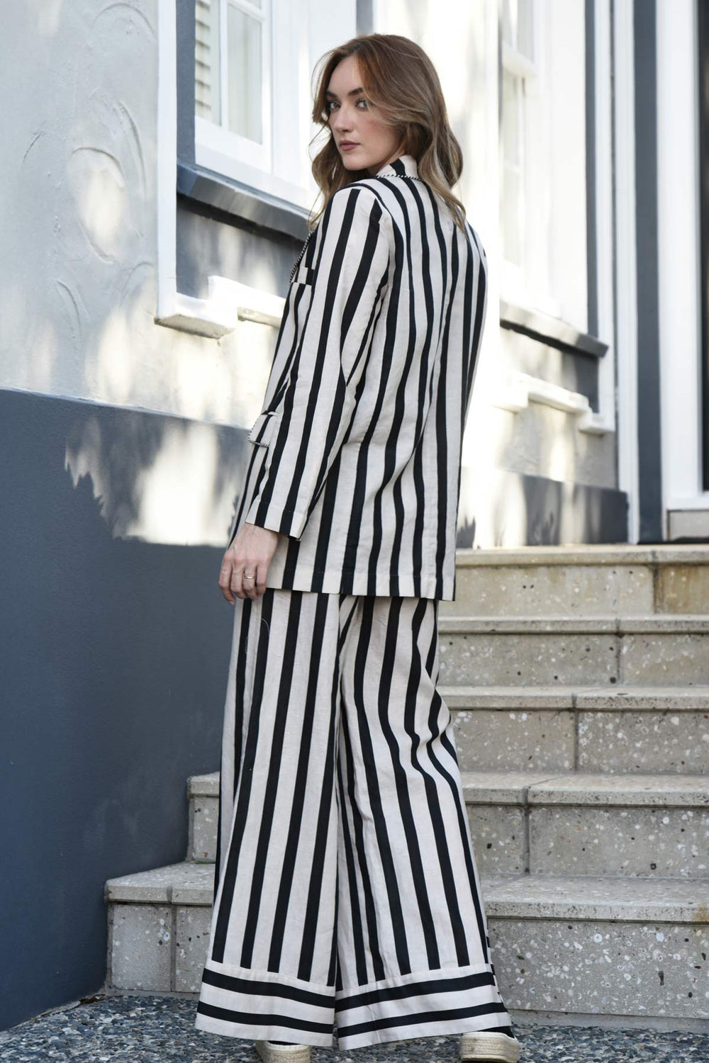 A summer wardrobe classic that offers lightweight coverage, the ‘Seville Strolls’ trousers are a staple for all your styling needs. Highlighting our ‘Cherry Stripe’ striped linen blend, these wide legged, relaxed pants, feature an elasticated waistband and side pockets, draping down to a full length cut.