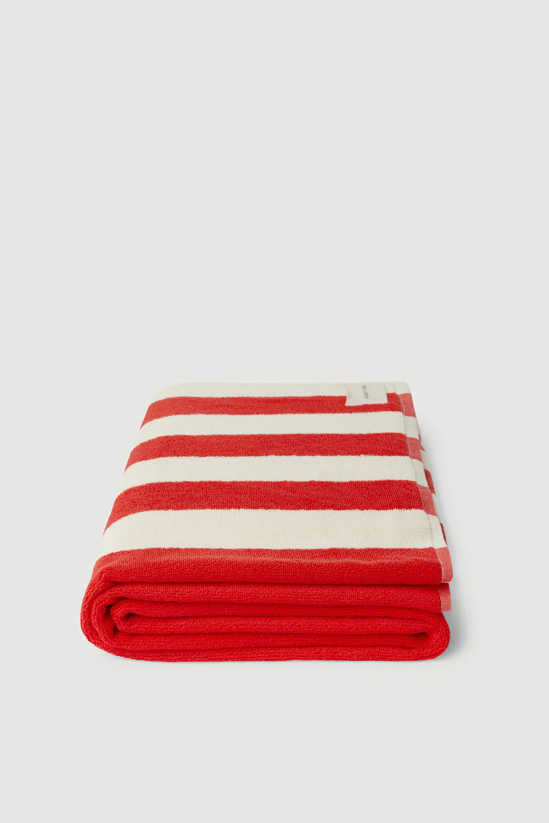 A beach essential. Crafted from a soft yet durable cotton, this towel features our signature contrast stripe design and branded logo patch.