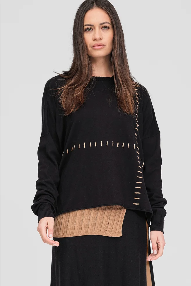 Contrast stitch detailing knitted into the front