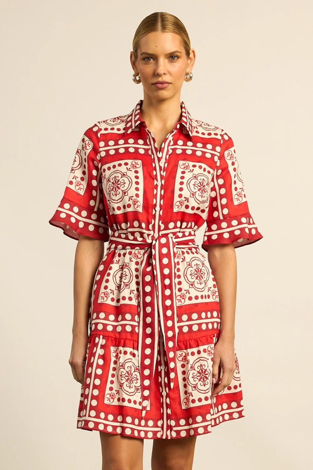 the submerge dress offers an easy-fitting silhouette finished with a tiered hem and softly fluted cuffs. a wide self-tie belt shapes the waist, while the distinguished scarf print, inspired by travels abroad, brings vibrance and individuality. designed for versatility, it’s a piece as suited to everyday wear as it is to resort escapes.