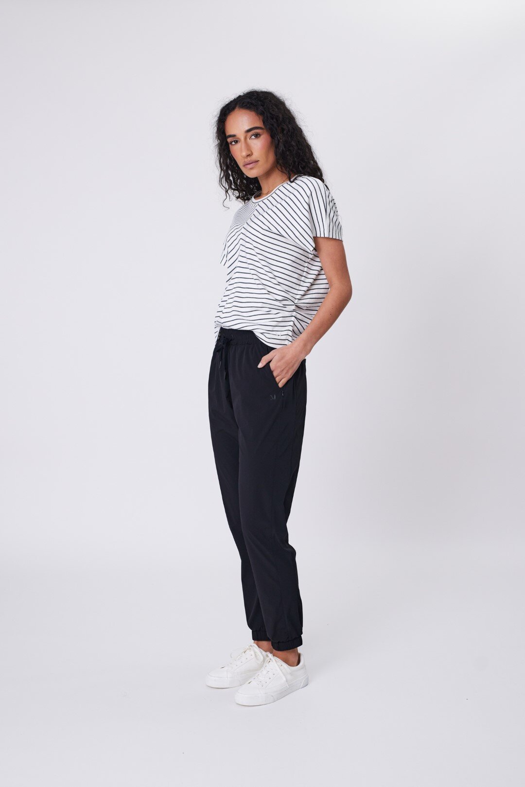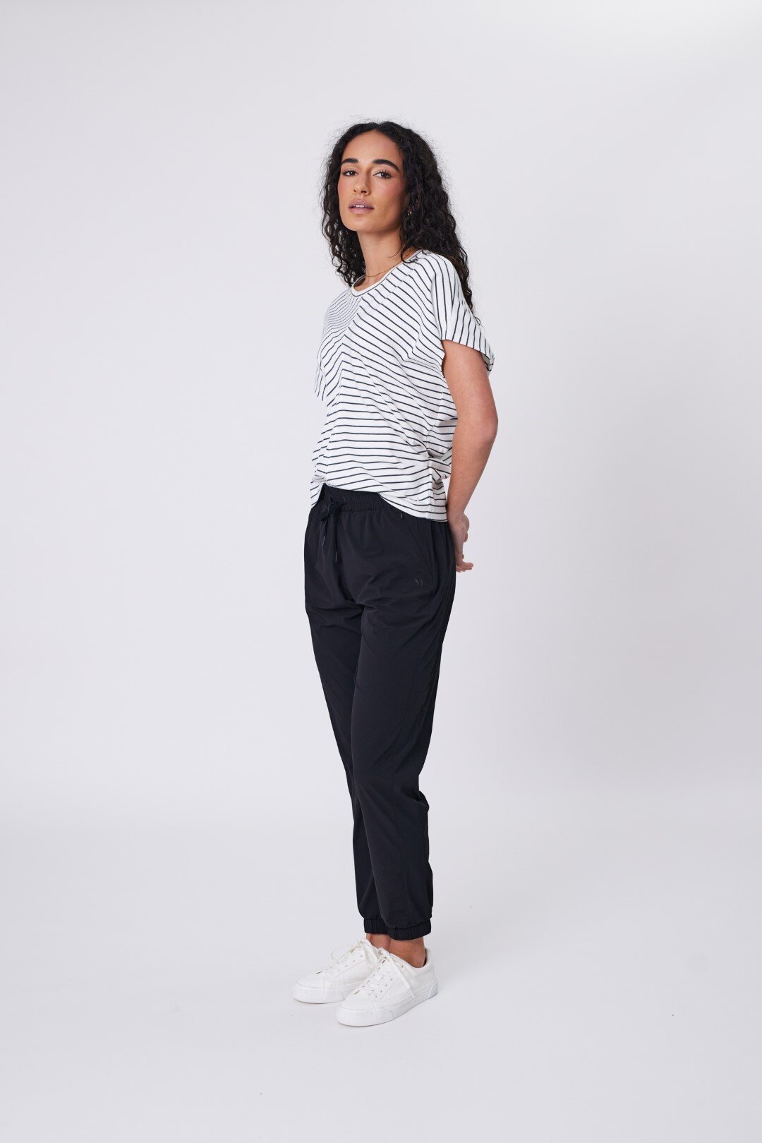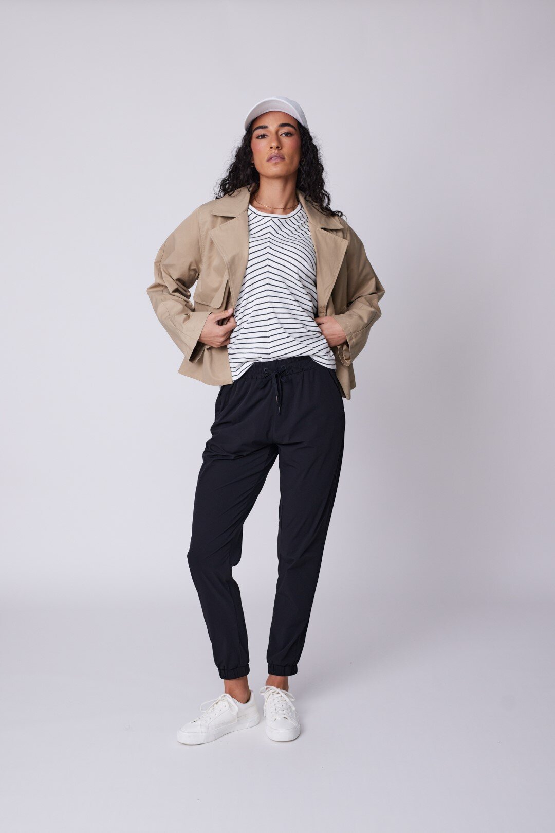 Our new Travel Pant is here and it's ready to go the distance. Crafted from our Featherlight Stretch fabric making them feel weightless, with a subtle 4-way stretch for added flexibility and movement. These quick-drying, breathable and wrinkle-resistant pants pack down small and are the perfect travel companion. Features include an elasticated waist, silicone-coated metal trims, tapered legs with side panel detailing and two invisible zip pockets to keep your belongings safe and secure. The Travel Pant works seamlessly with our knitwear and basic tees. Pair with the matching Travel Jacket for the ultimate sporty fit.