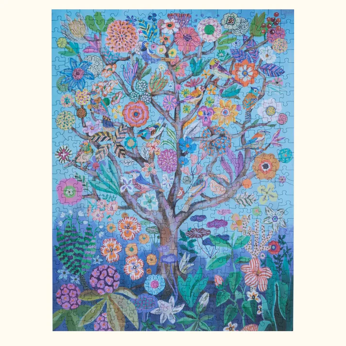 Featuring vibrant flowers and birds nestled in its branches, this colourful and intricate design offers a joyful, artistic challenge for puzzle lovers.