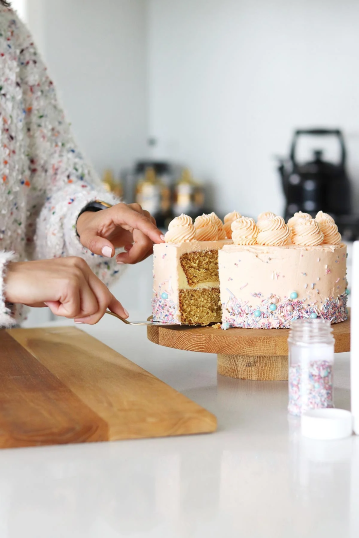 This cake freezes beautifully, is the PERFECT cake to carve for some out there cakes and keeps fresh for days!
