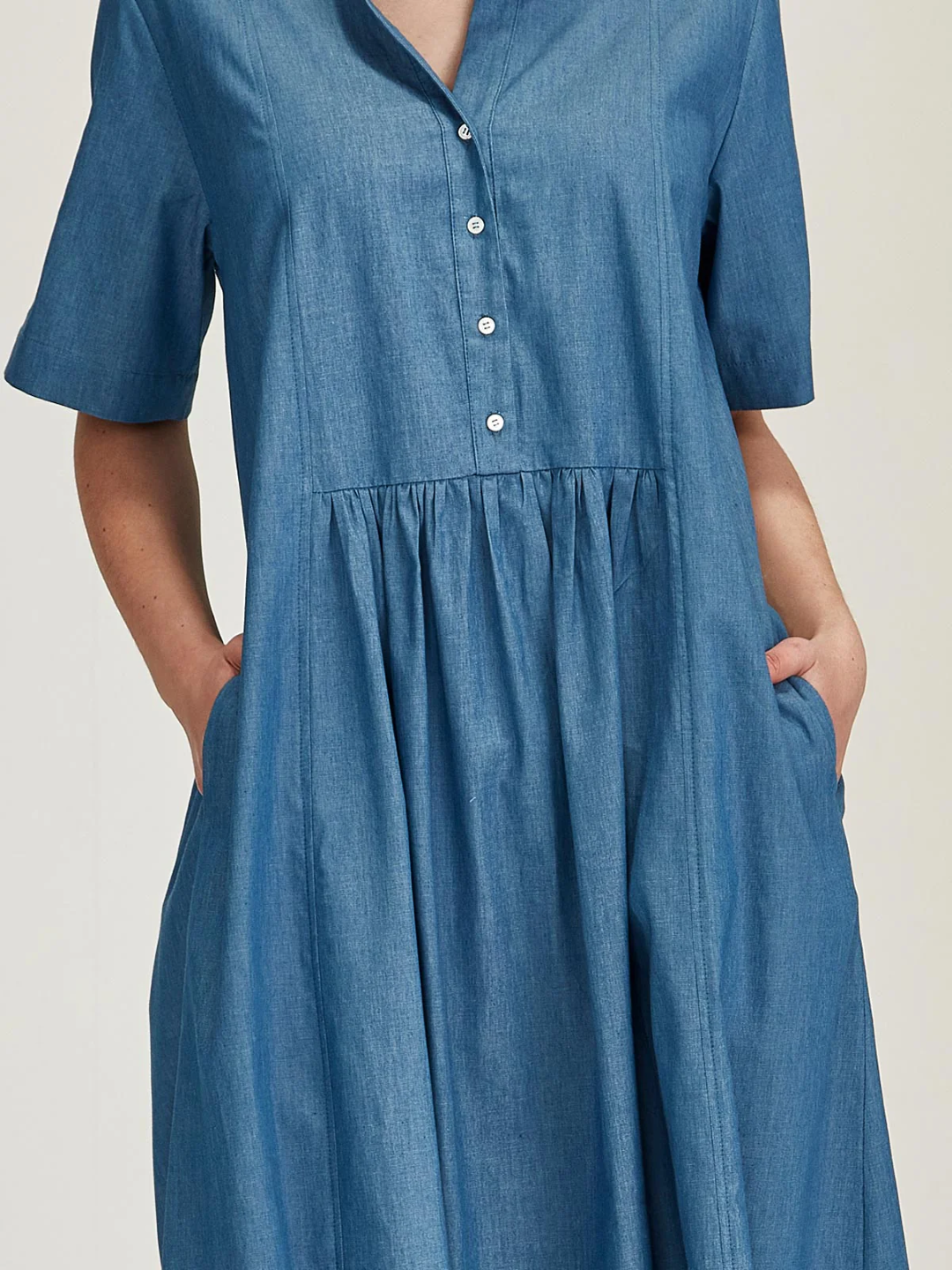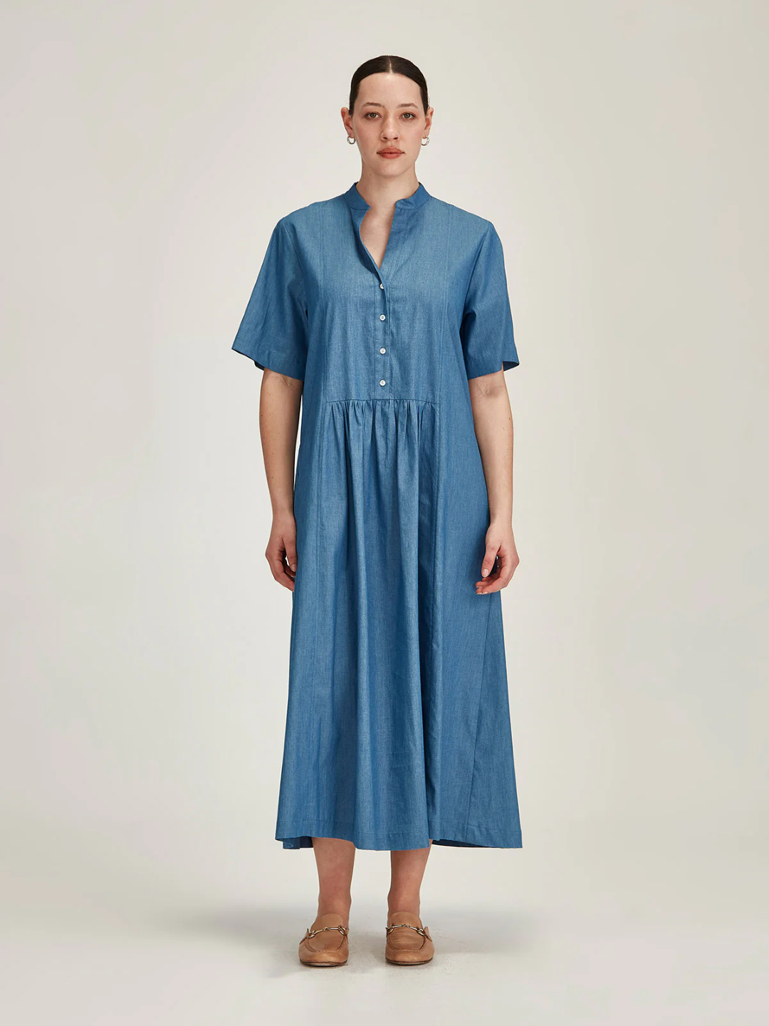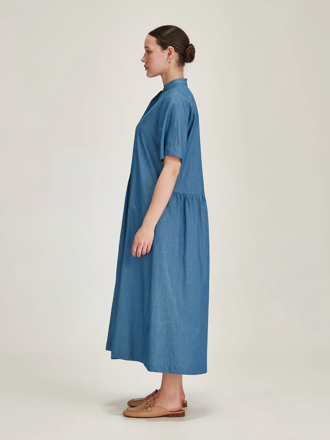 Part of our Winter Chambray collection, the Vicky Dress is an easy-wearing midi dress defined by its flattering drop waist.