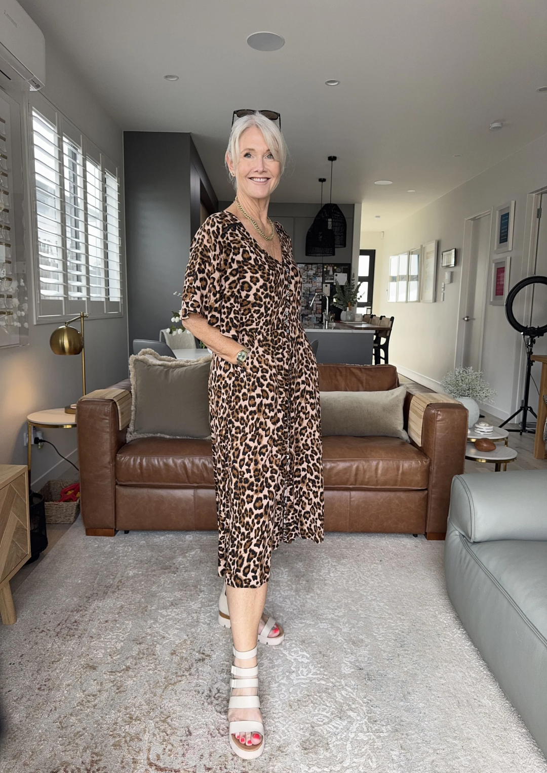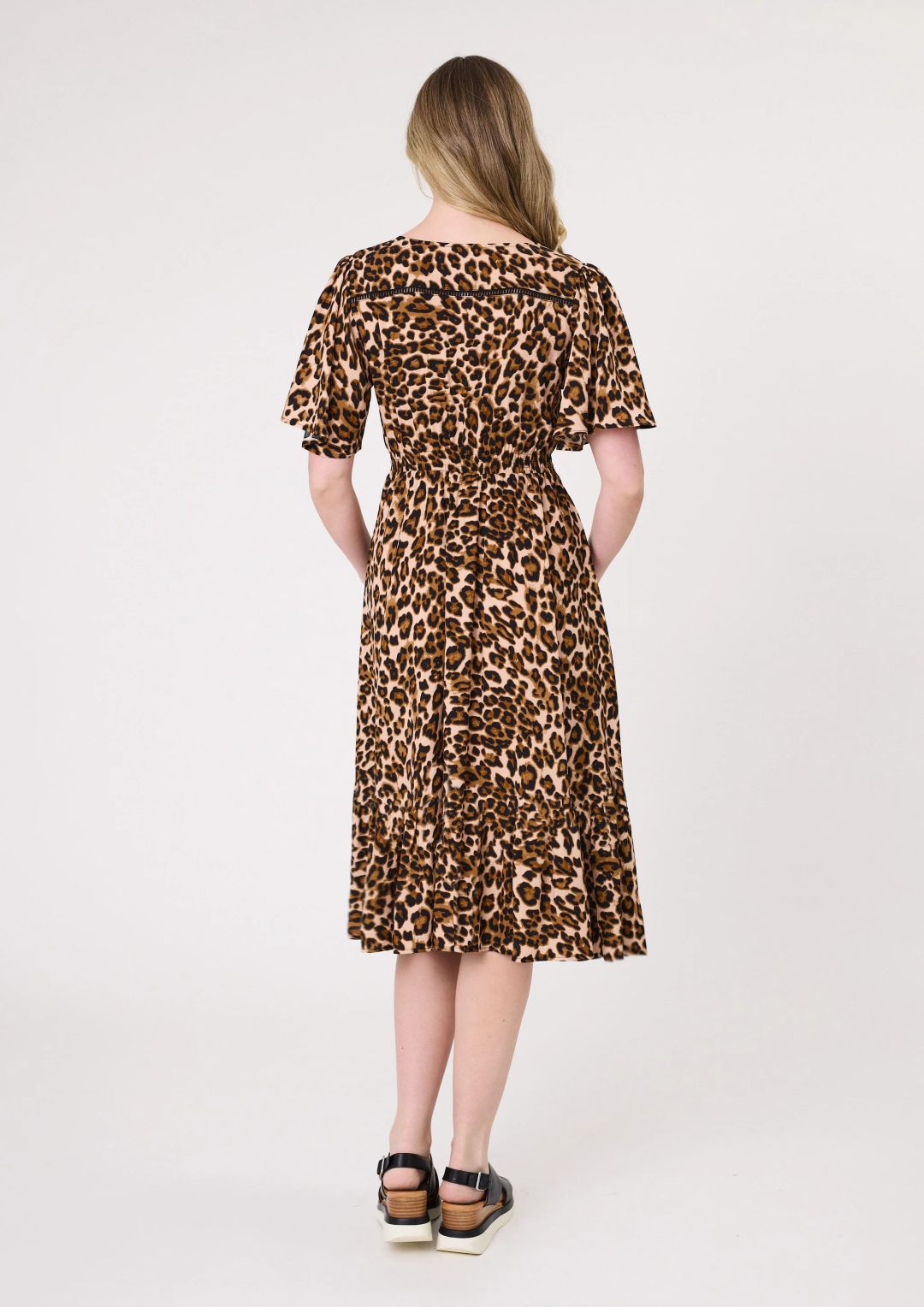All-over leopard print with a flattering V-neck and short sleeves.