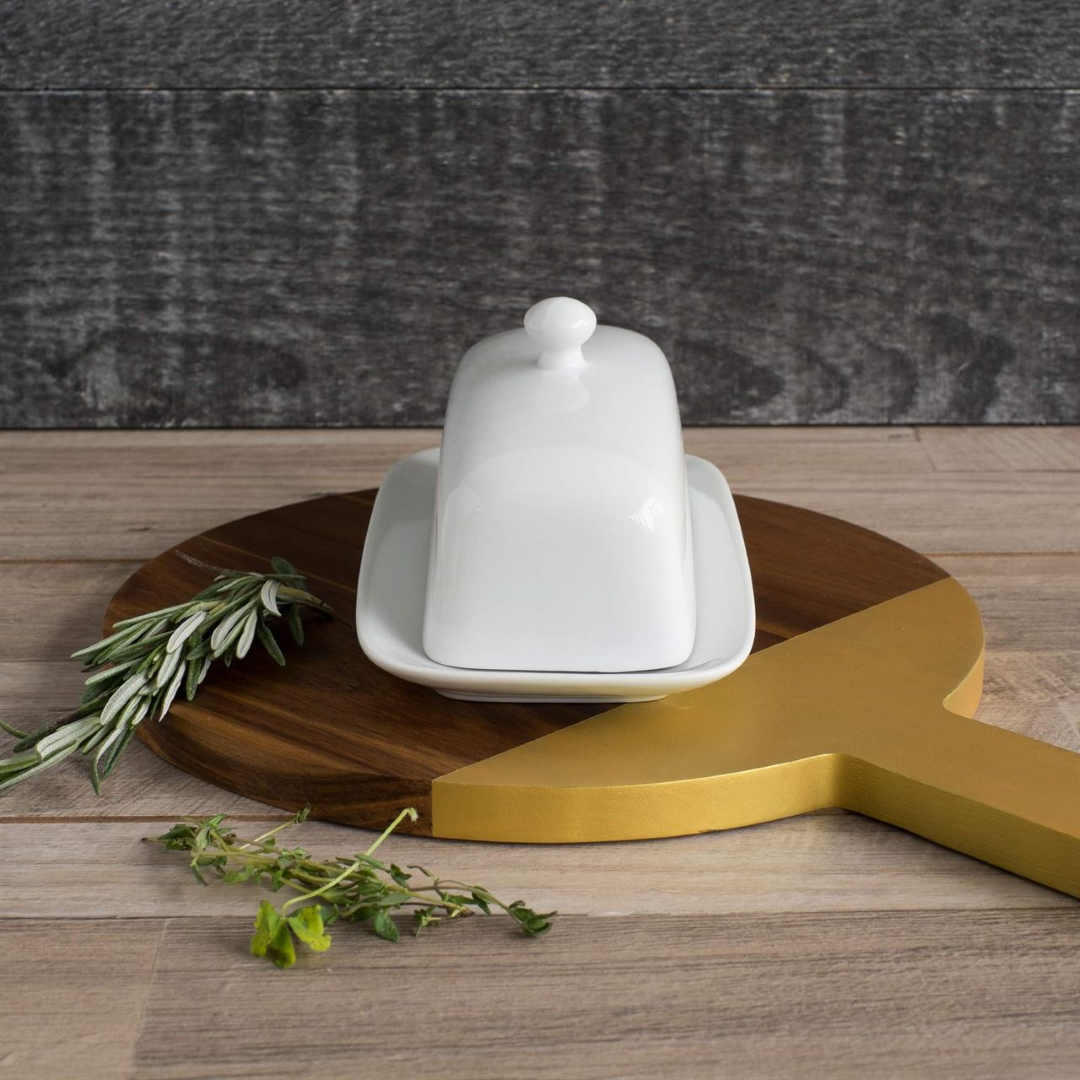 Butter never looked better than when placed on a stoneware dish with a matching lid. Durable stoneware dish and lid preserves the freshness of a stick of butter and safe from exposure to air and unwanted odors.