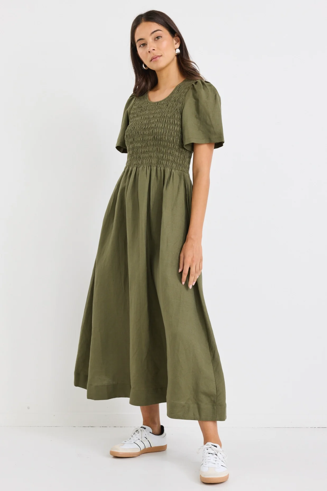 Feminine and effortless, the Wren Chambray Dress is a must-have for your wardrobe. The shirred bodice provides a flattering, flexible fit, while the puff sleeves add a touch of romantic elegance. Pair it with sandals for a relaxed daytime look or style it with wedge for an elevated ensemble. Whether you're heading to brunch, a picnic, or a weekend getaway, the Wren Chambray Dress is the perfect blend of style and ease.