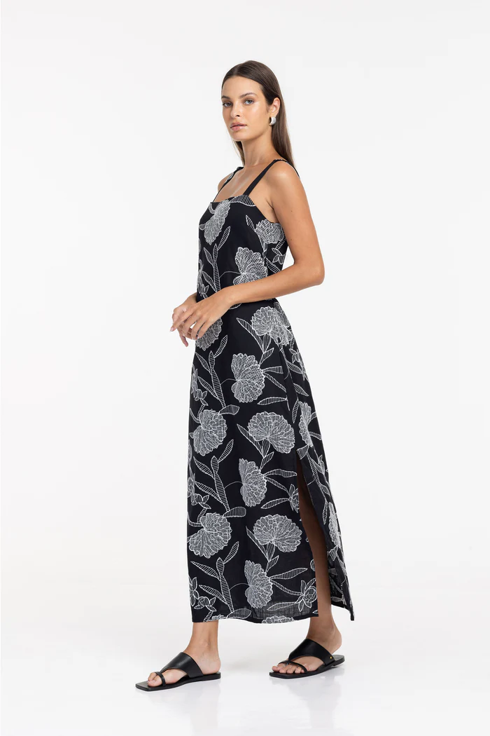 A statement in simplicity, the Written In The Stars Maxi brings effortless sophistication to warm-weather dressing. The soft cotton base provides a lightweight, breathable foundation, while the ivory embroidery adds a striking layer of texture and artistry. Its clean square neckline and slim straps highlight the shoulders and collarbone, before falling into a relaxed, full-length skirt that skims the body without clinging. The adjustable tie-back detail creates subtle shape through the waist, ensuring a comfortable and flattering fit every time. Refined, wearable and quietly captivating — this is the piece you'll reach for when ease and elegance are non-negotiable.