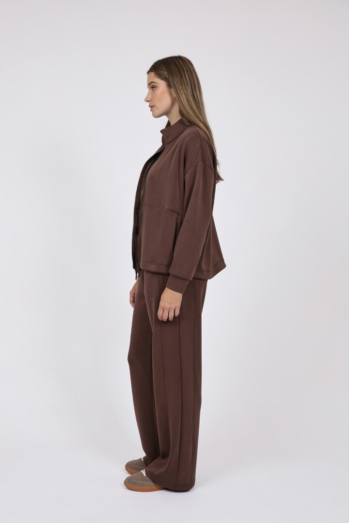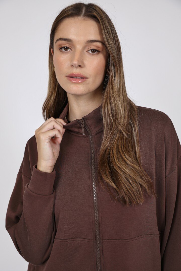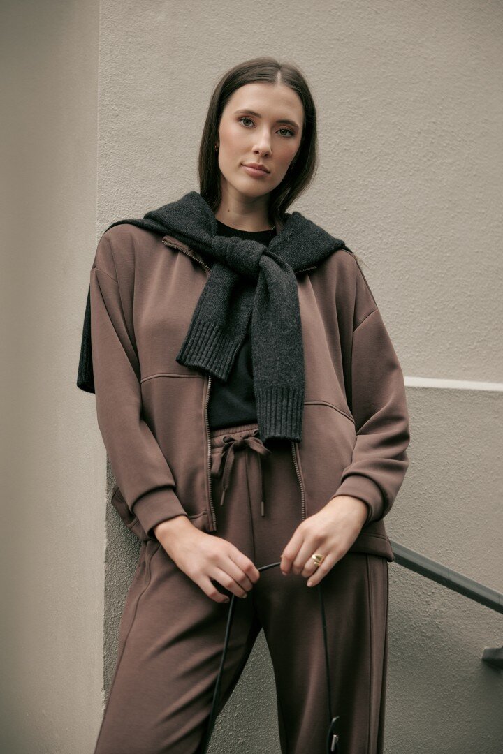 Sporty yet refined, the Zen Zip Through is a relaxed layer, designed for relaxed days at home or on the move. Cut from our new signature Soft Stretch Fabric - a supremely soft blend of modal and Tencel with a touch of spandex, designed to drape beautifully and move with you. It features front zip-through, funnel neck, and adjustable internal elastic cord at the hem, that lets you wear it loose or cinched. Pair with the matching Zen Wide Leg Pant for travel or quiet weekends at home, or layer over your favourite active sets for walks, post-pilates, or errands around town.